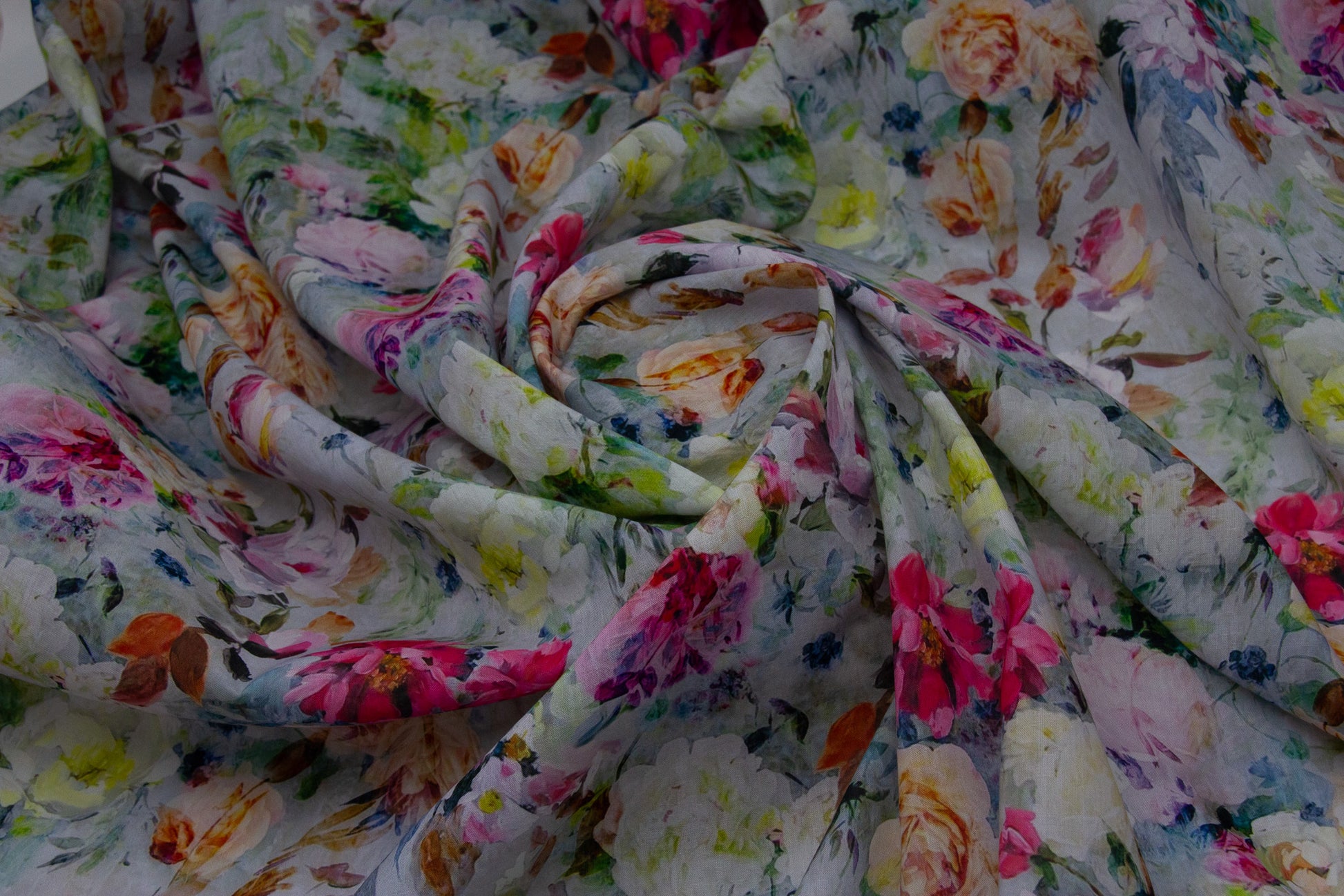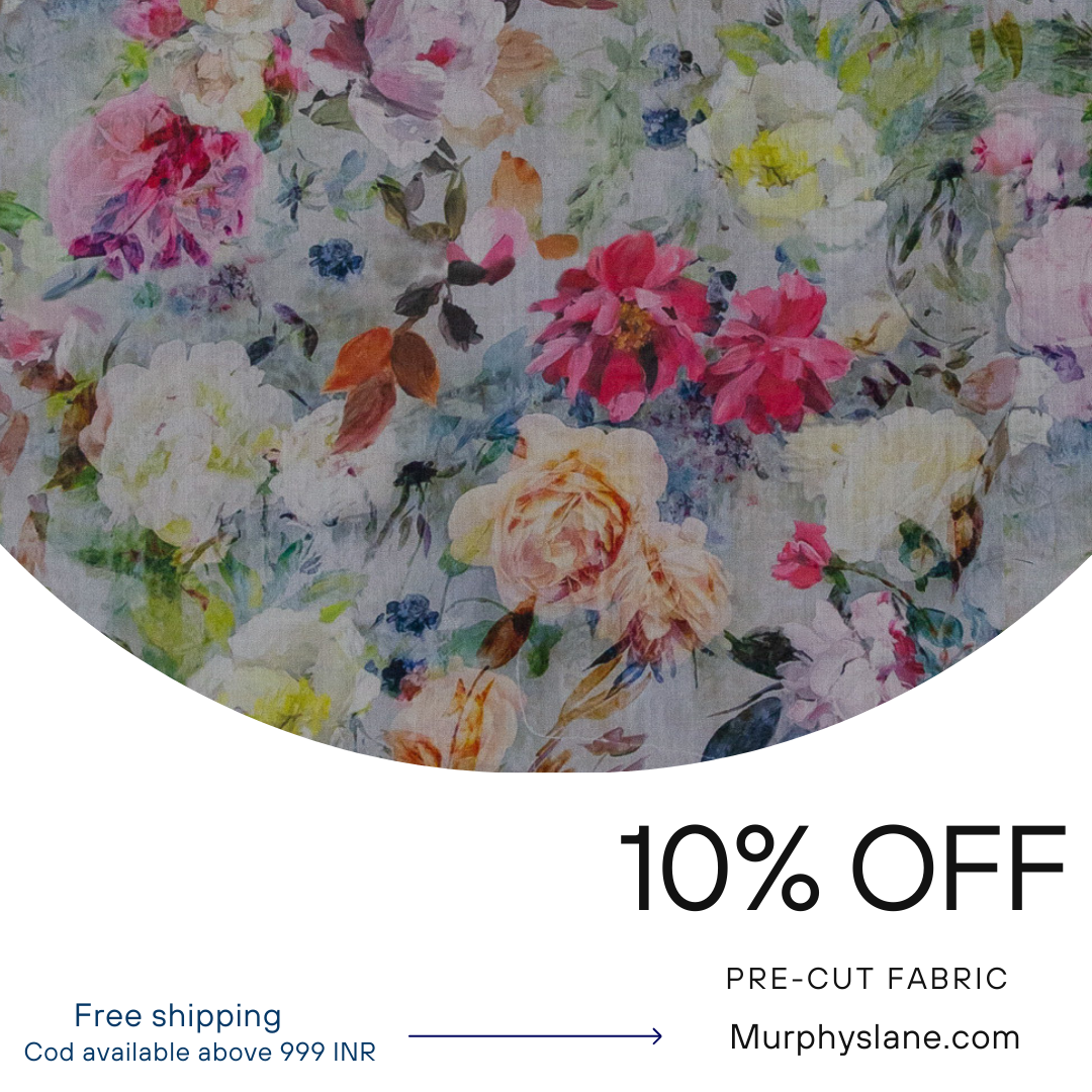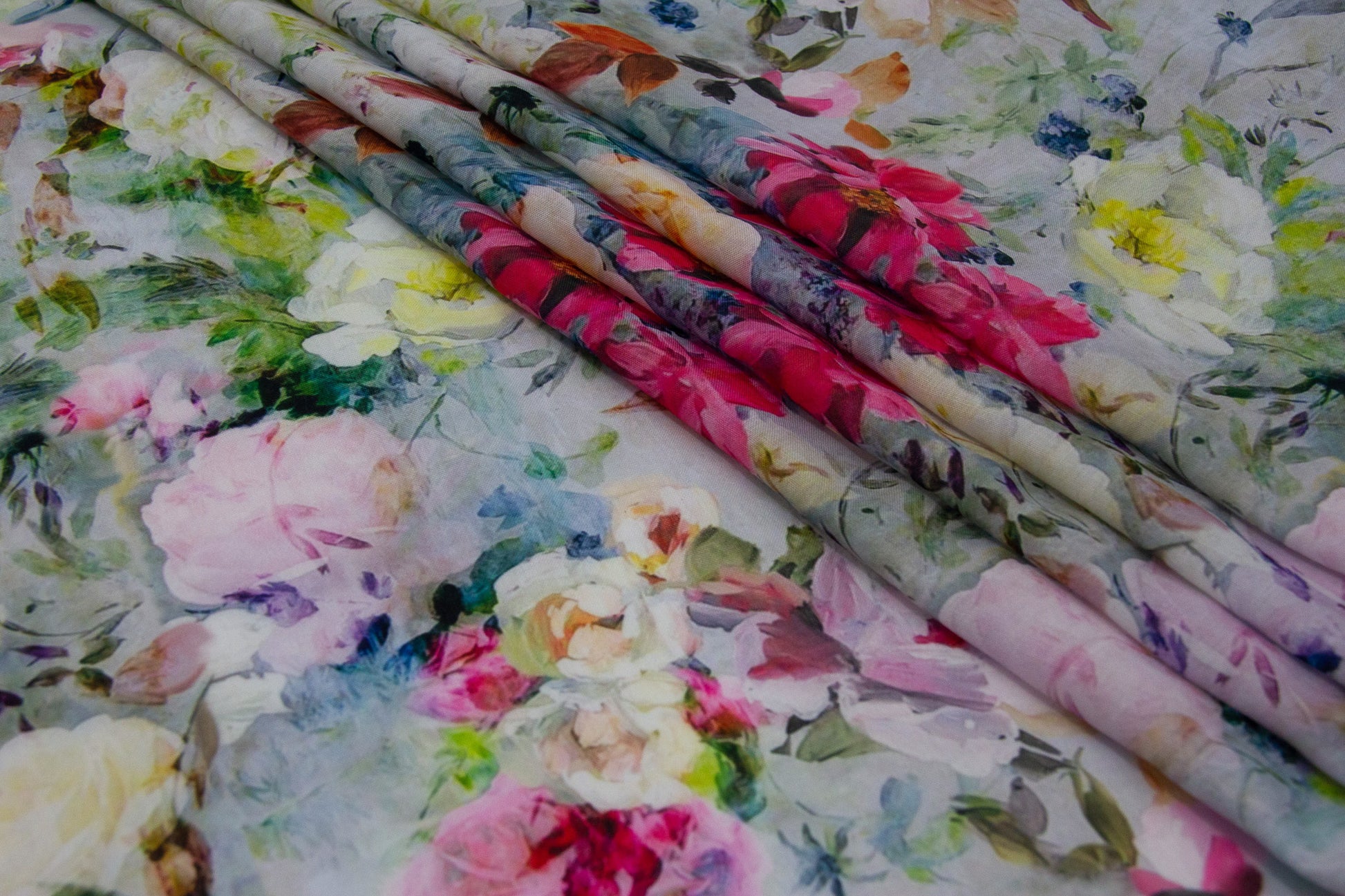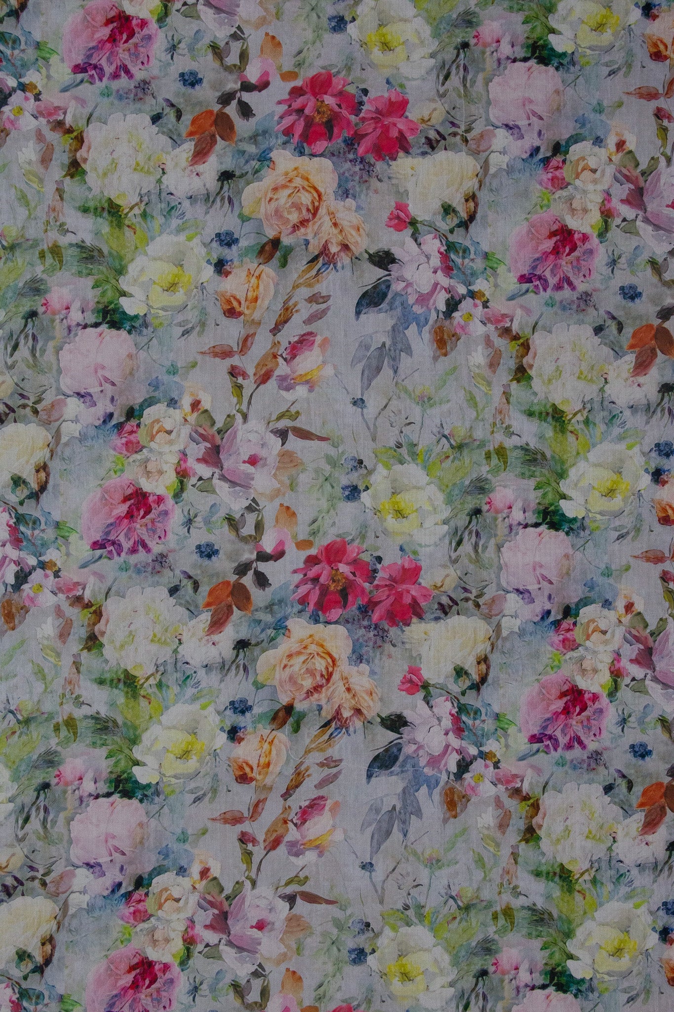 4 Meter Cotton Viscose Multicolor Floral on Light Bluish Gray