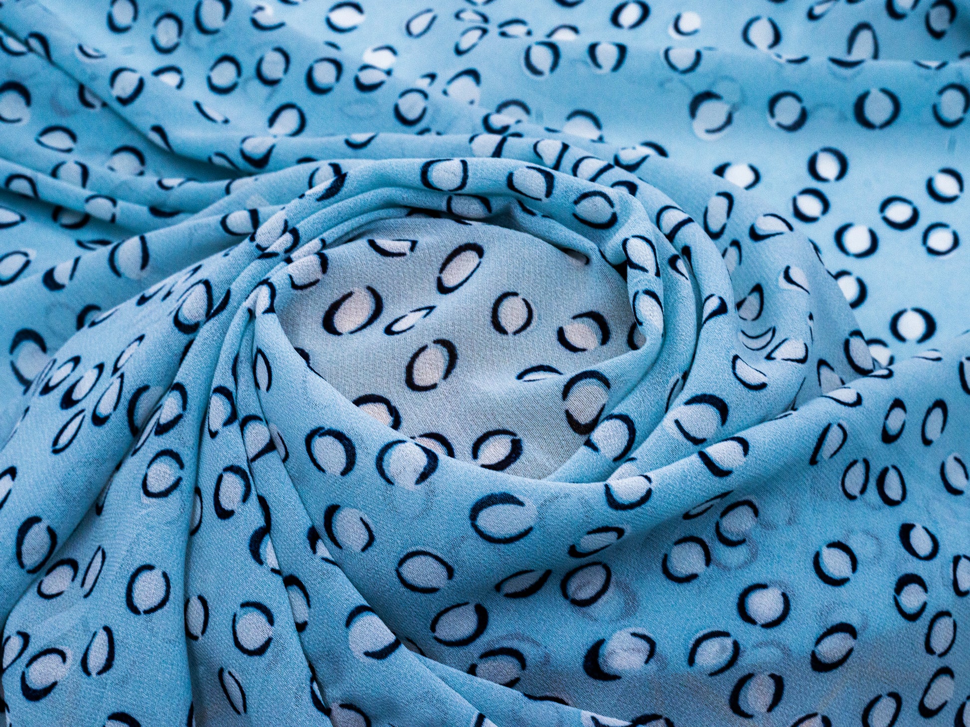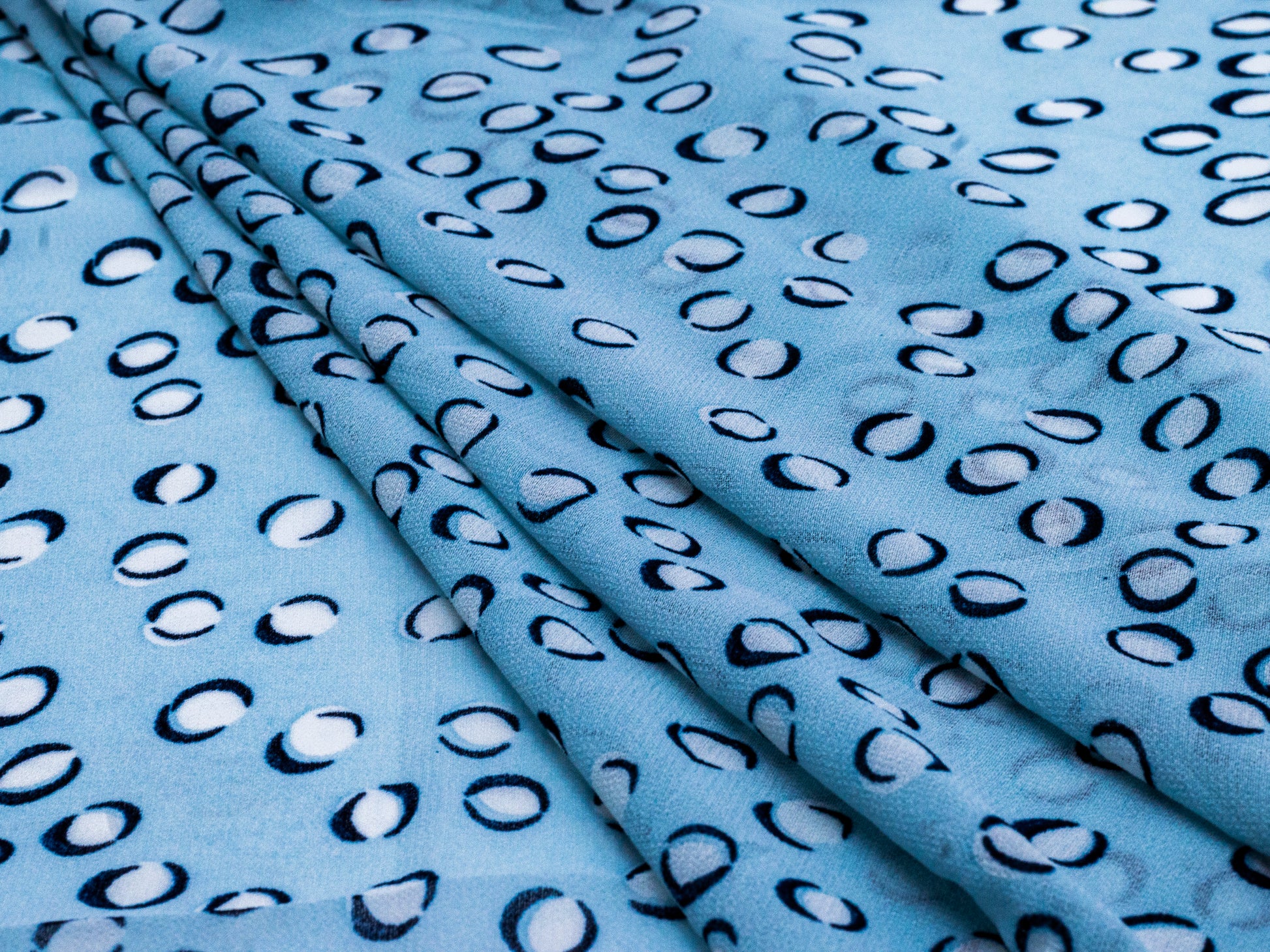 Imported Georgette Dotted White on Skyblue 58" Fabric