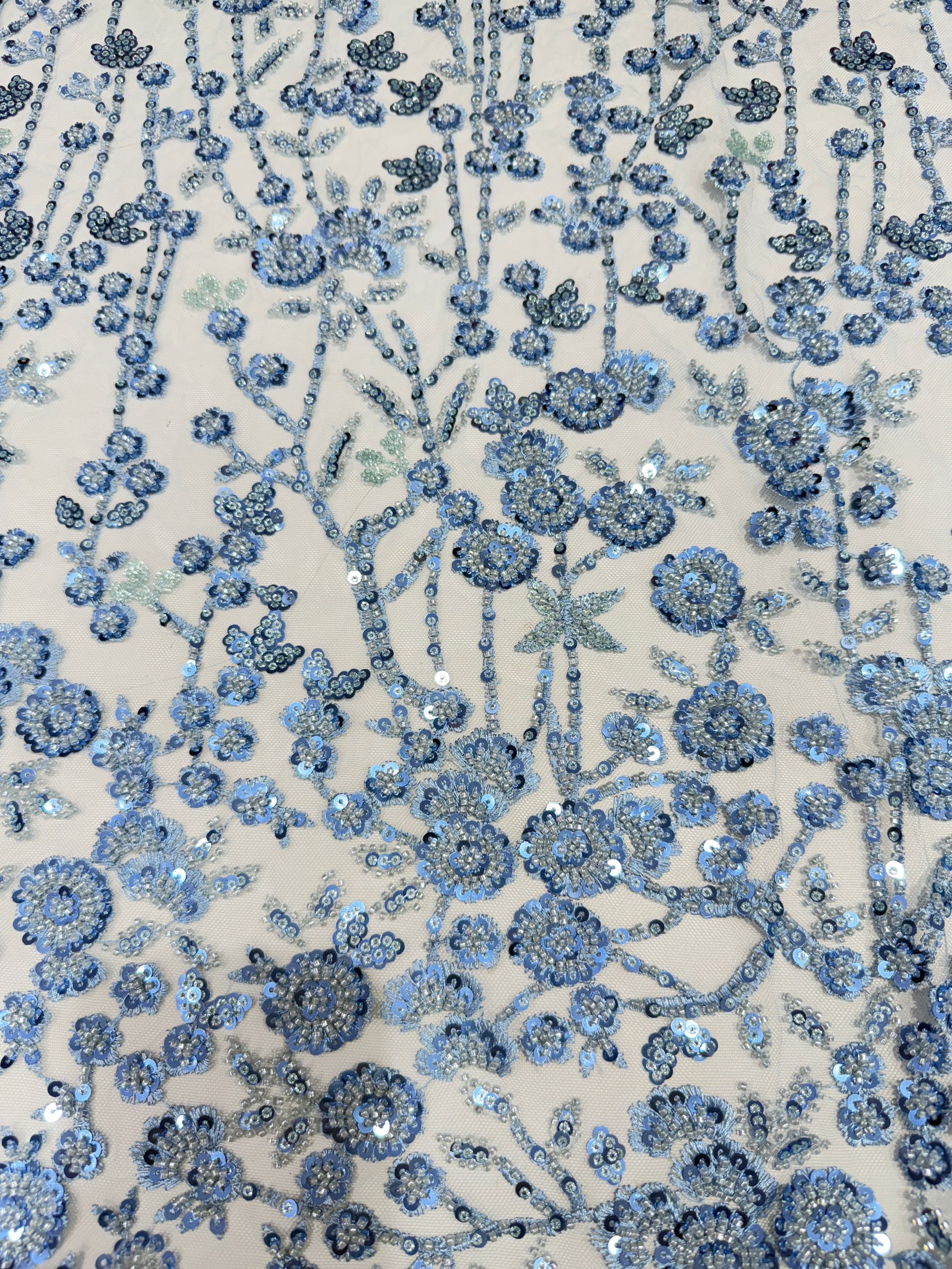 Baby Blue Glory Sequin Beaded Handwork Net 56" Fabric