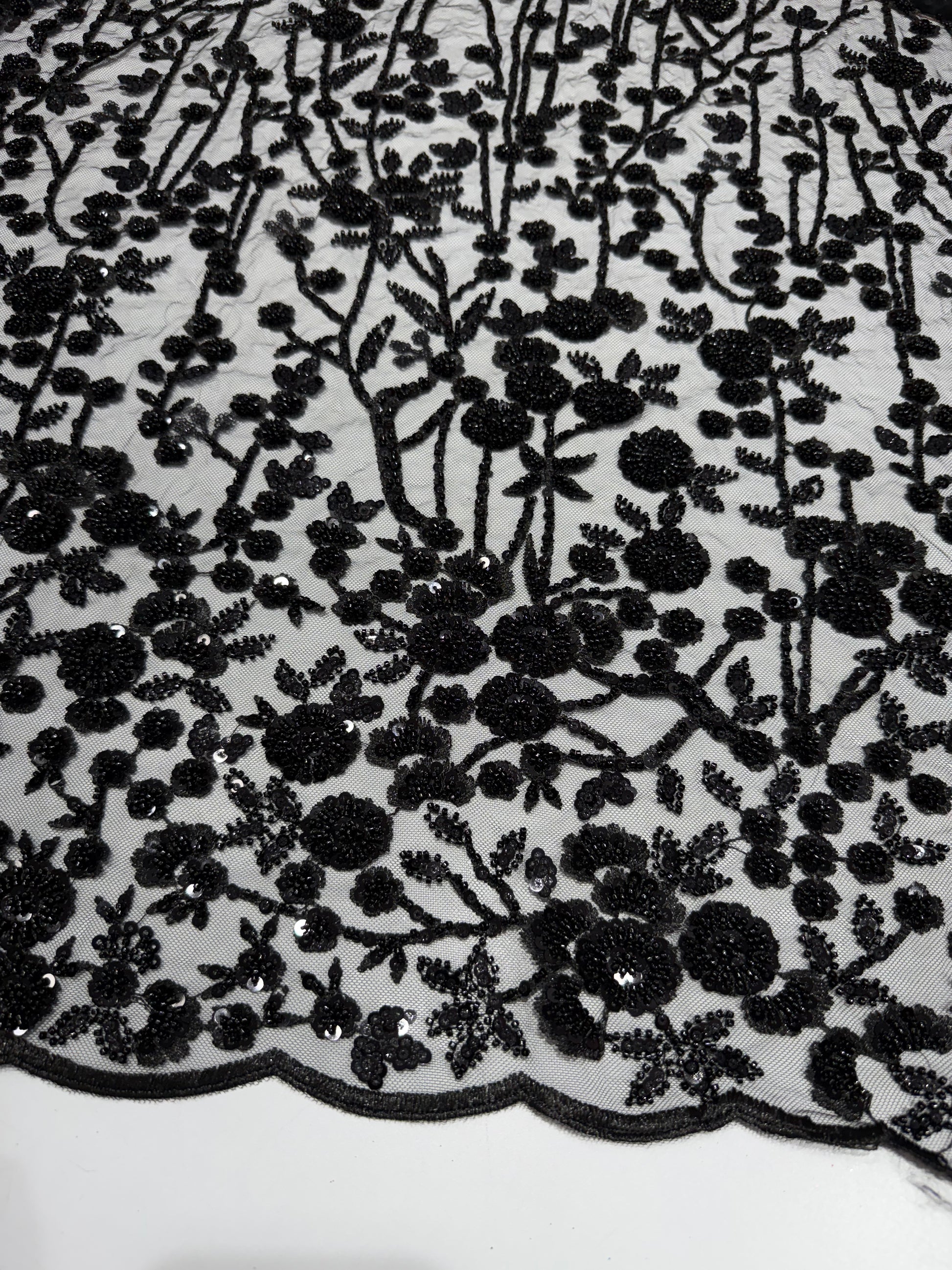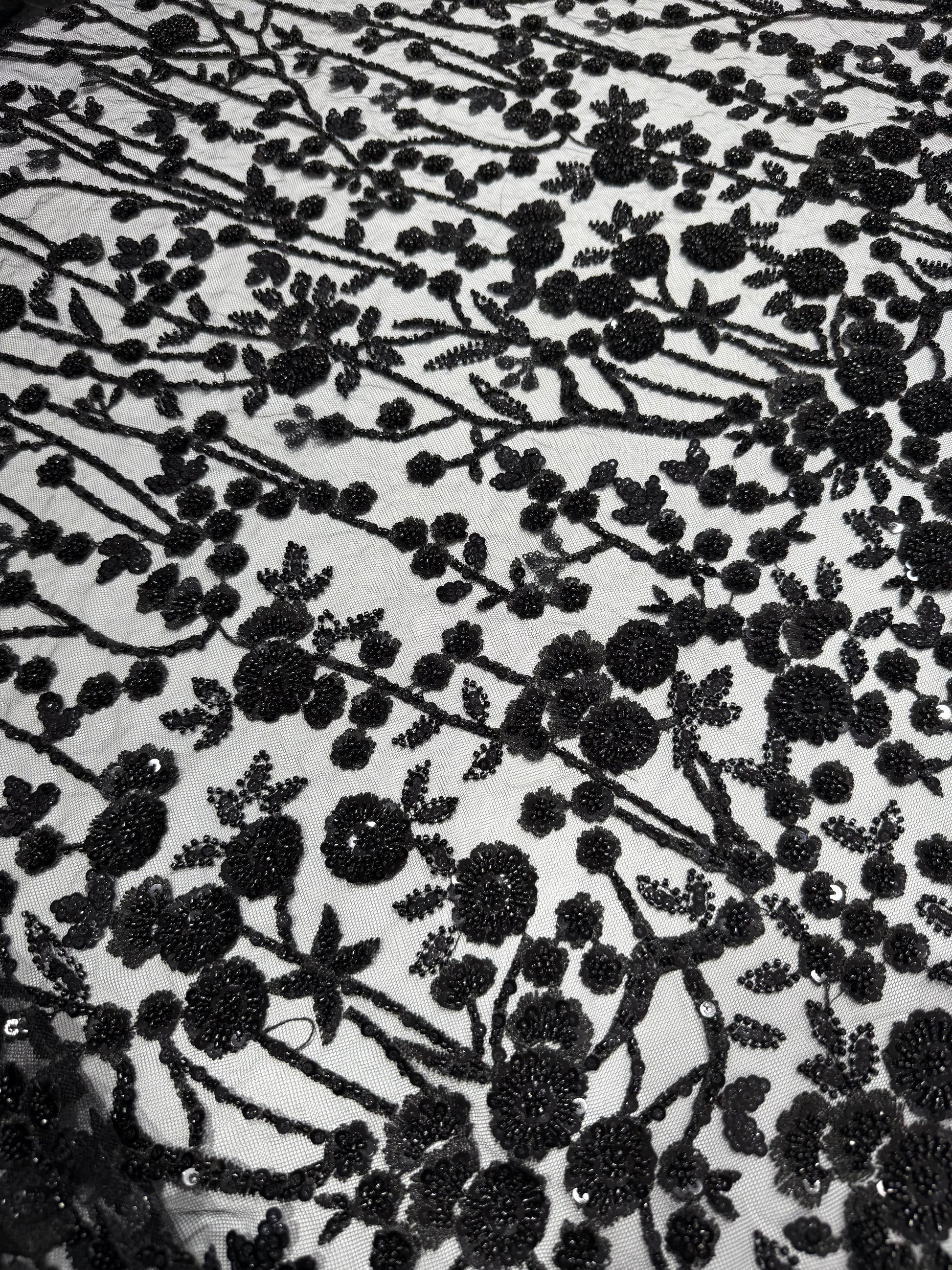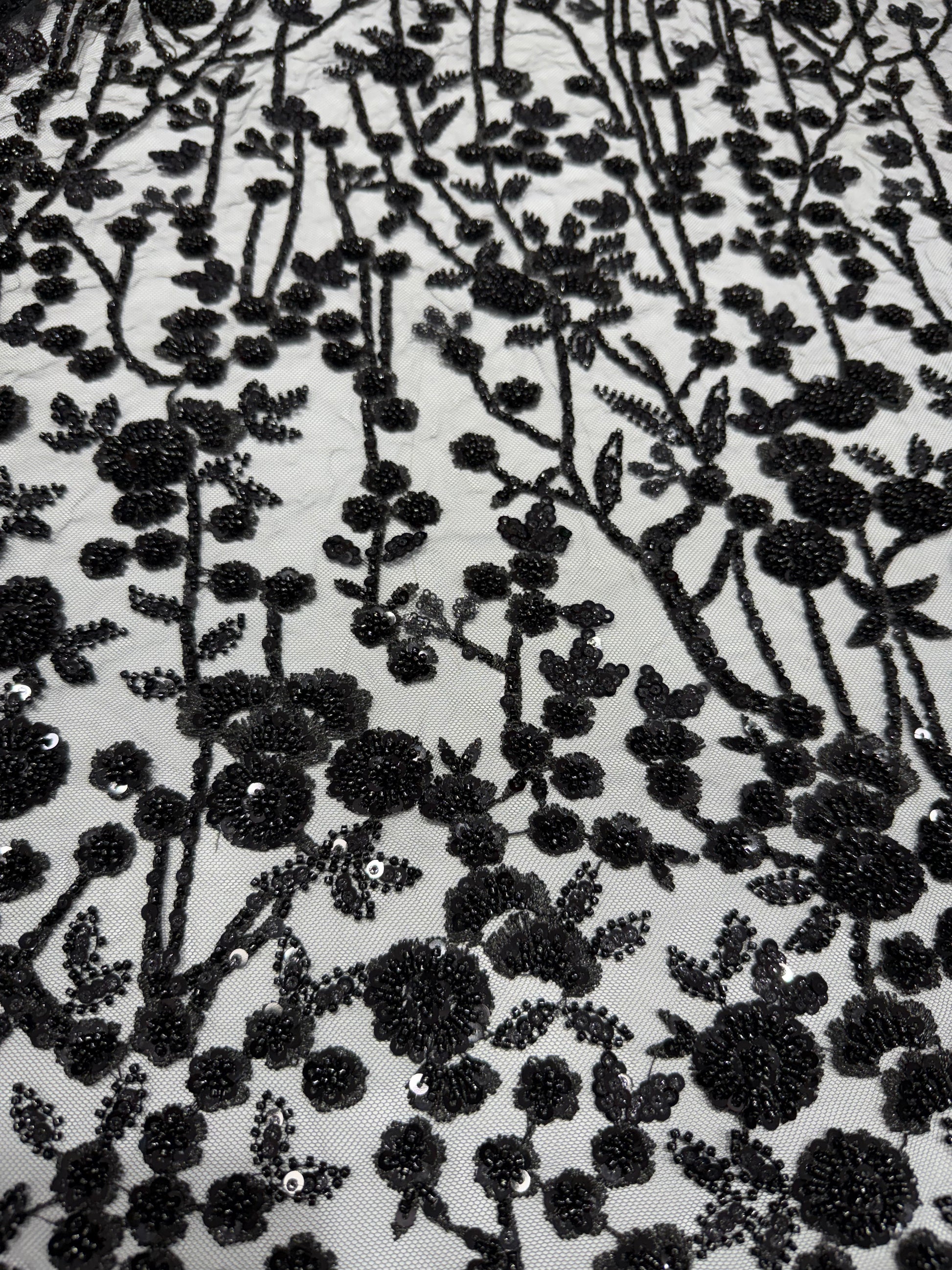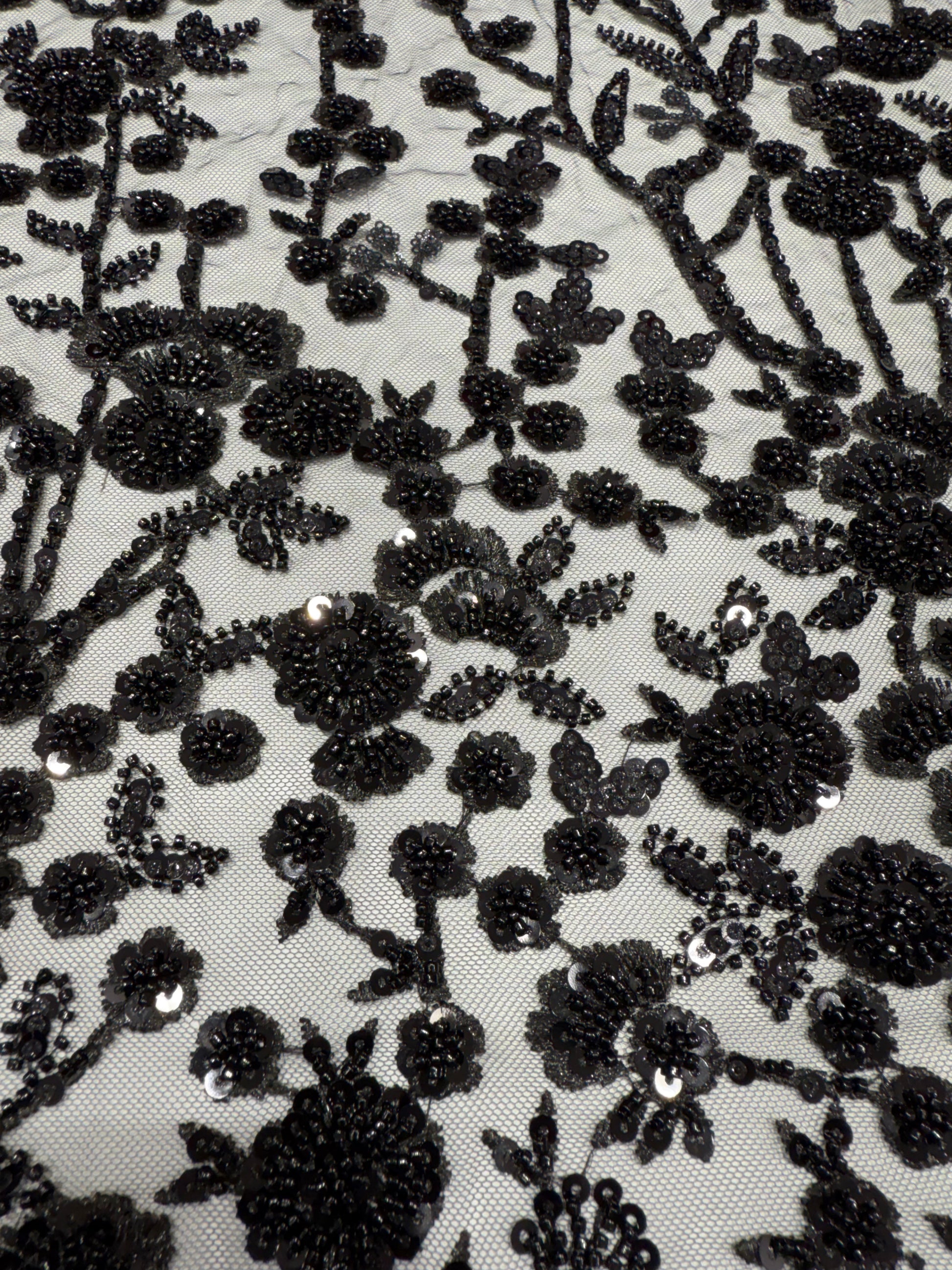 Black Glory Sequin Beaded Handwork Net 56" Fabric