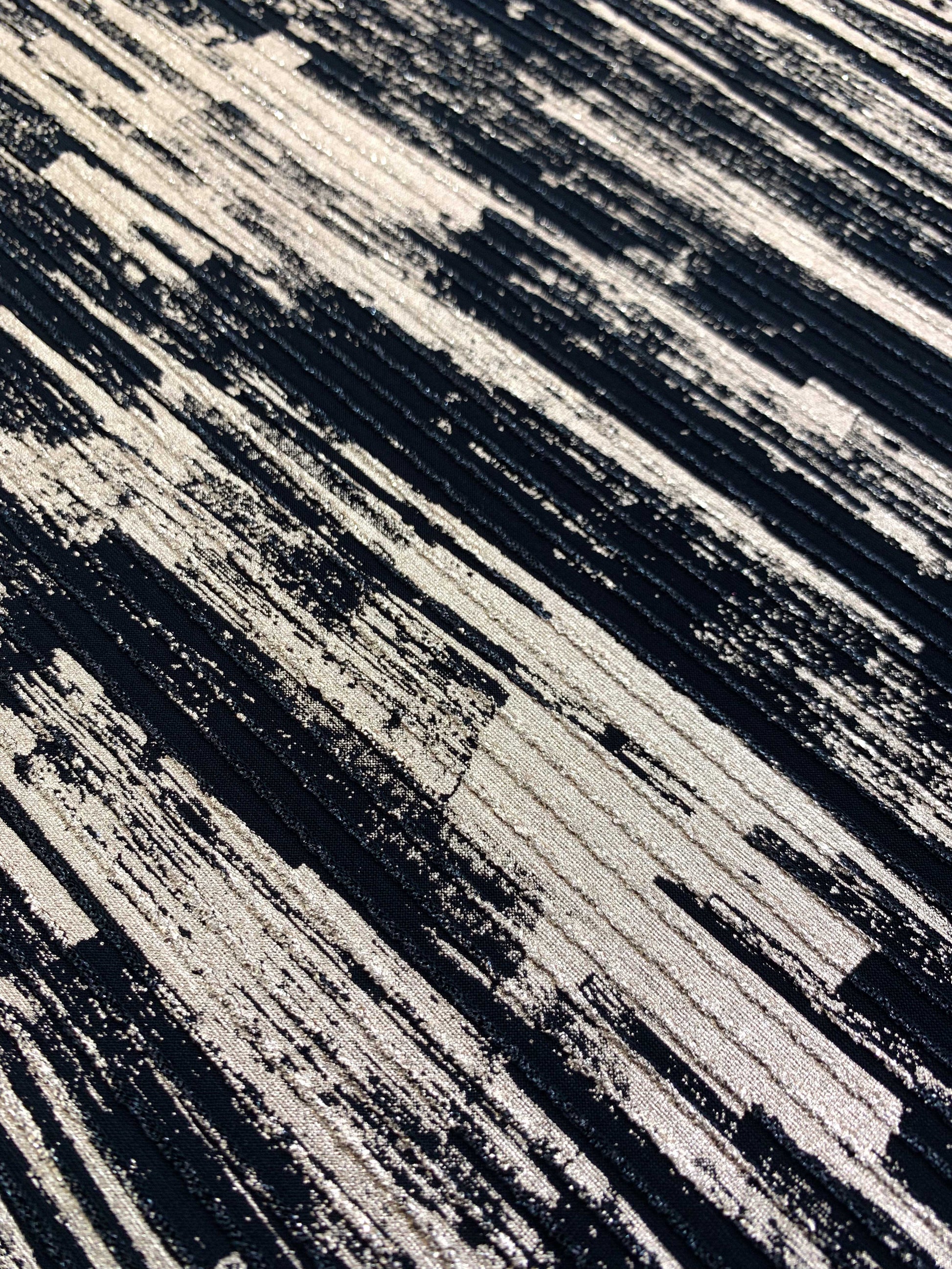 Our Gold on Black Stretchable fabric – an exported rarity , Exceptionally hard to find, this fabric boasts amazing quality, making it a premium choice for crafting various garments. The striking combination of black and golden print adds an eye-catching allure, perfect for creating dresses or formal tops that make a statement. The textured, stretchy nature of the fabric not only enhances comfort but also ensures a flattering fit.