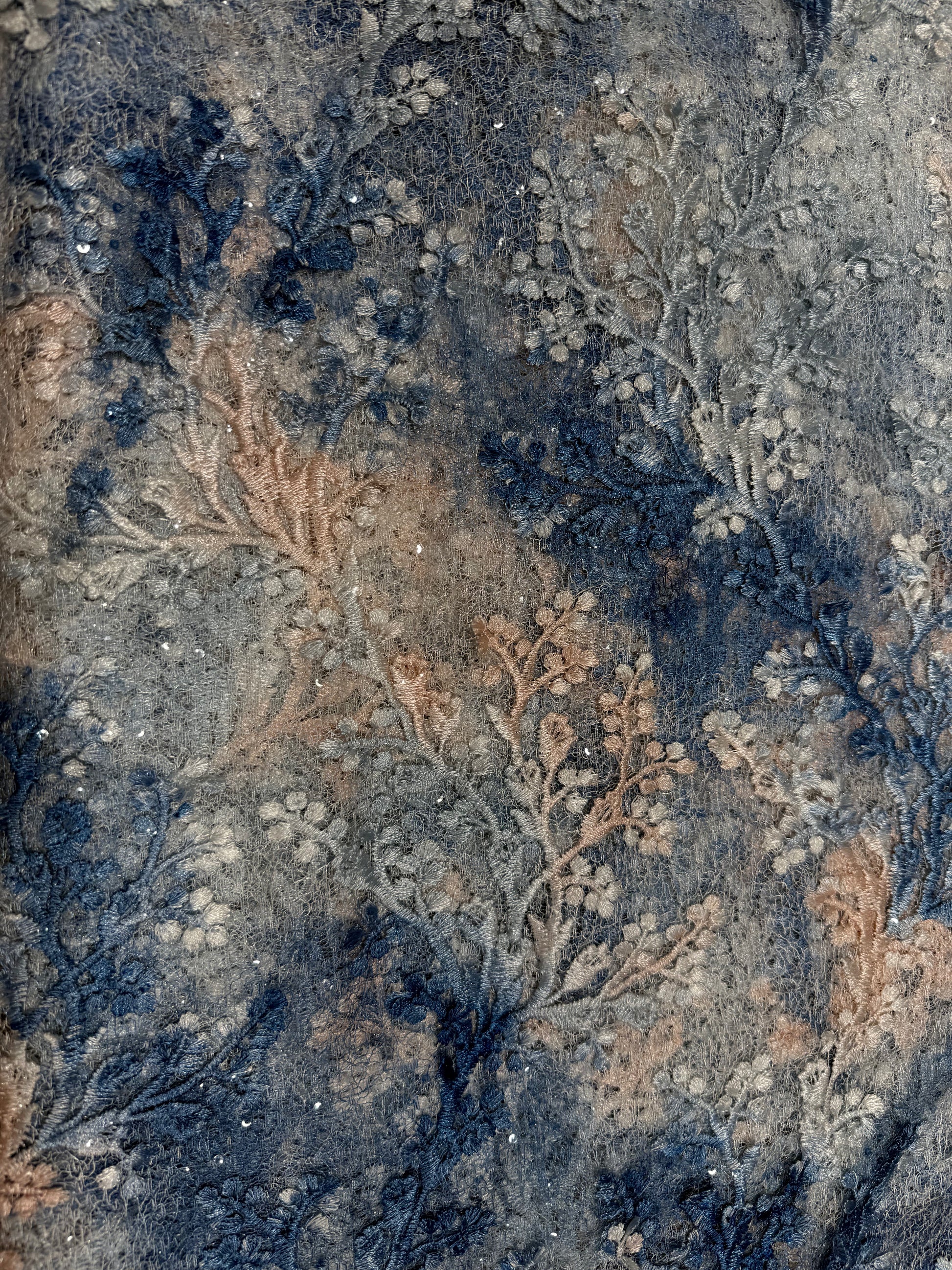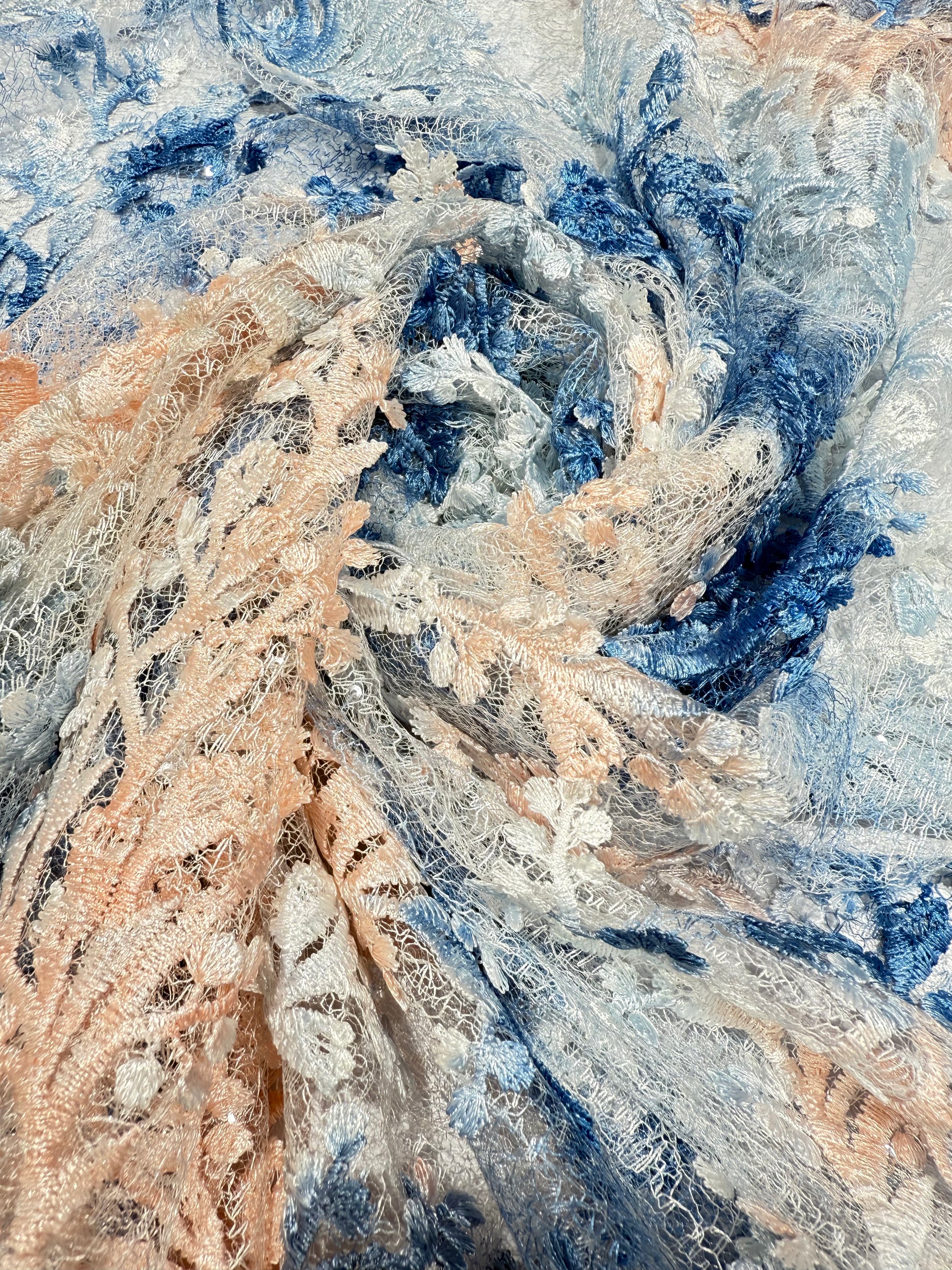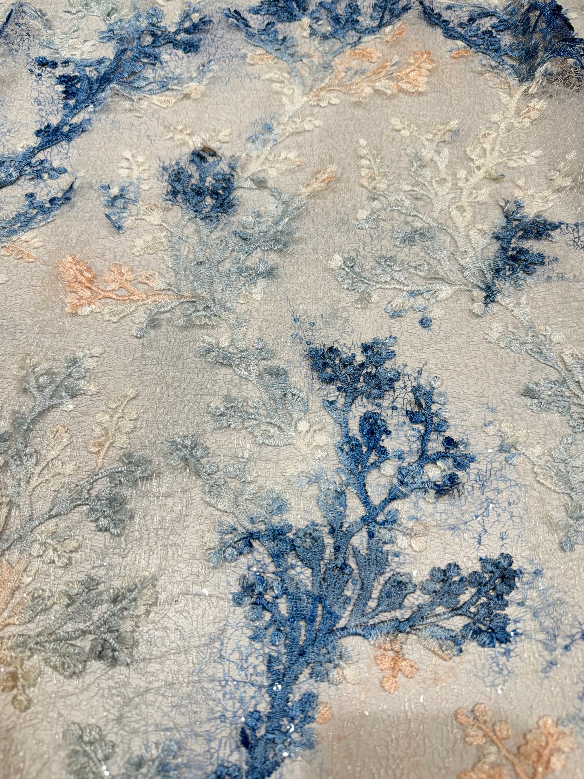 Blue & Cream Blossom Garden Handwork Net 56" Fabric