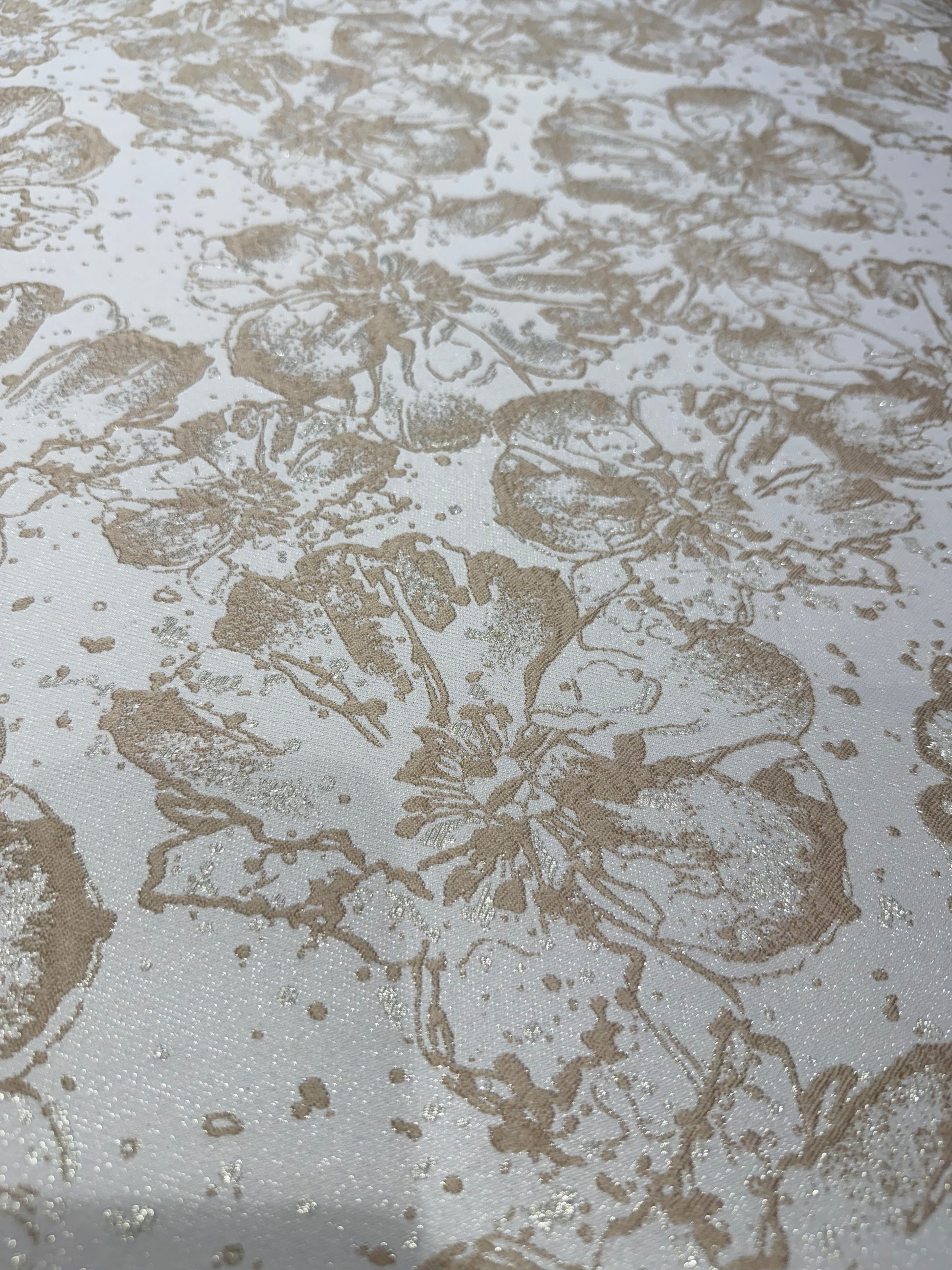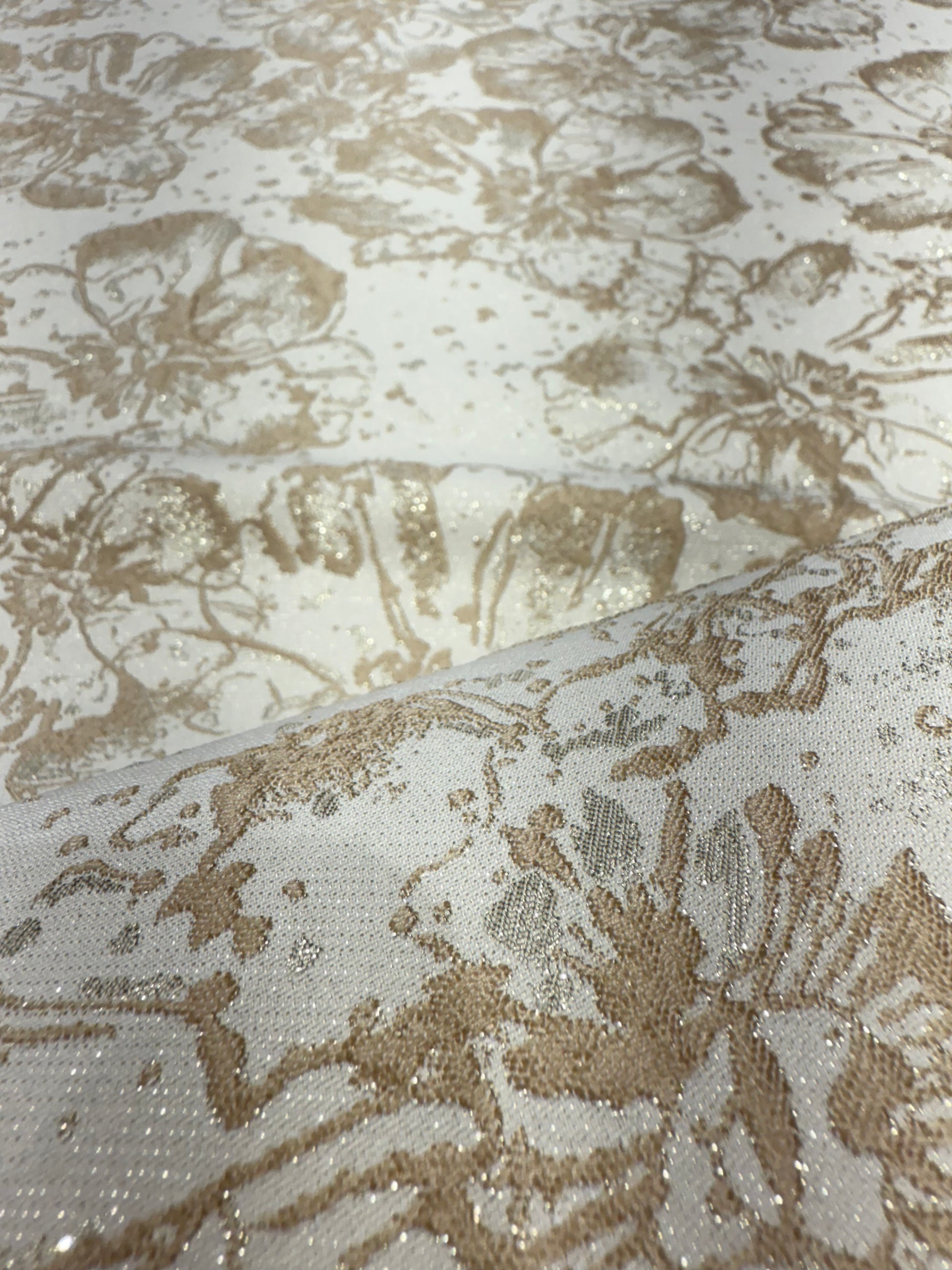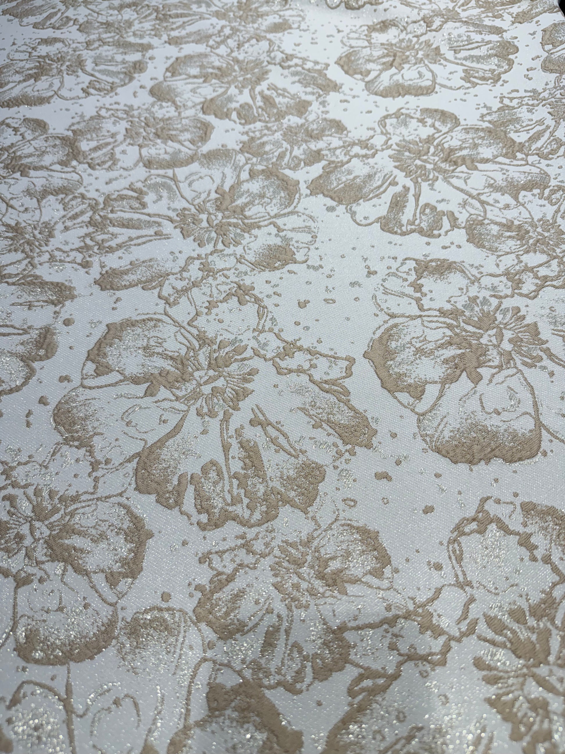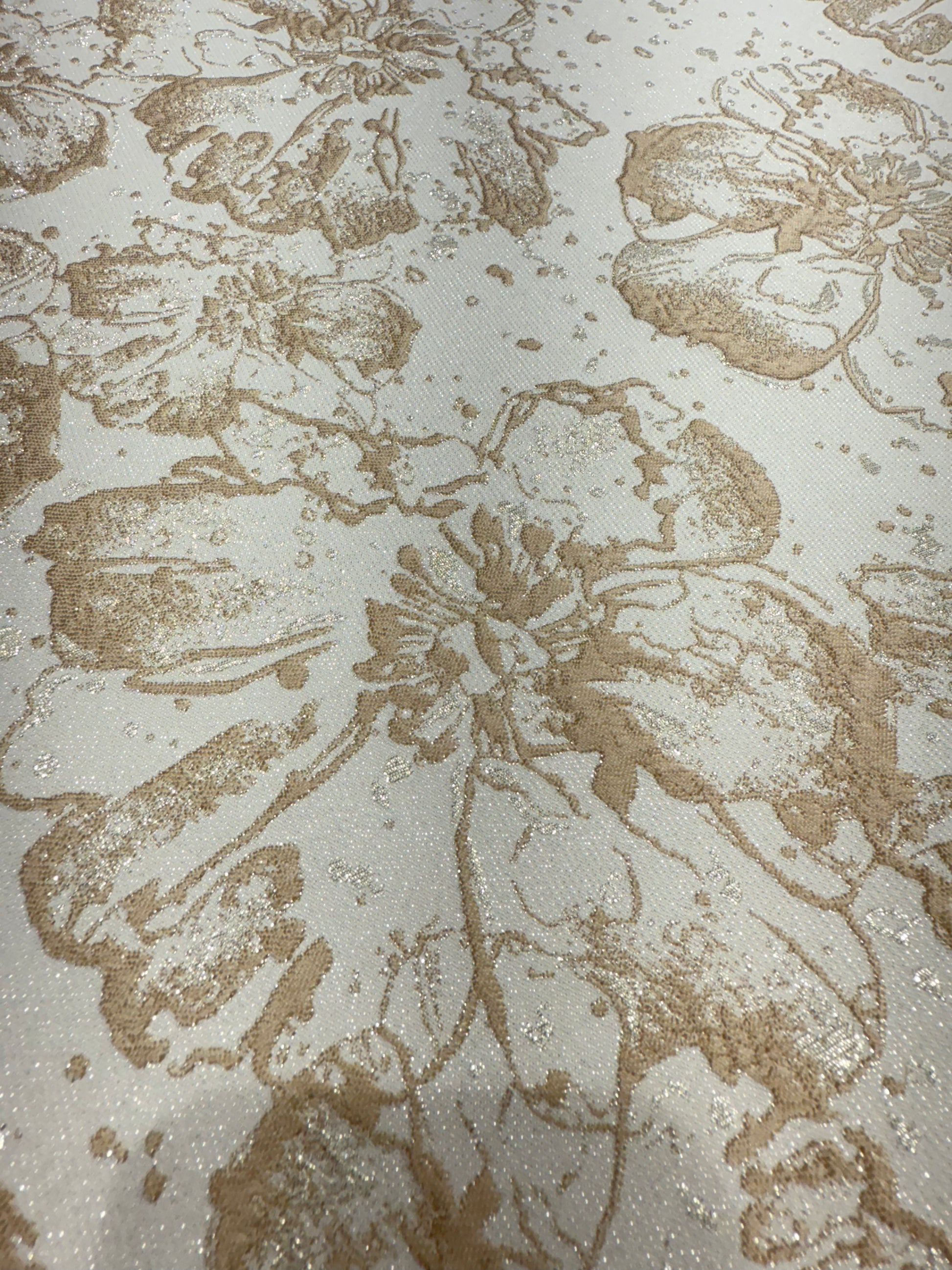 Brown Floral Golden Brocade is a stunning fabric with a shiny golden finish with beautiful brown floral patterns. Its elegant and fancy look makes it perfect for special occasions like weddings and parties. This premium fabric is ideal for designing dresses, gowns, kurtis, sari blouses, and more. With its graceful appearance, Floral Golden Brocade adds a touch of luxury to any outfit.