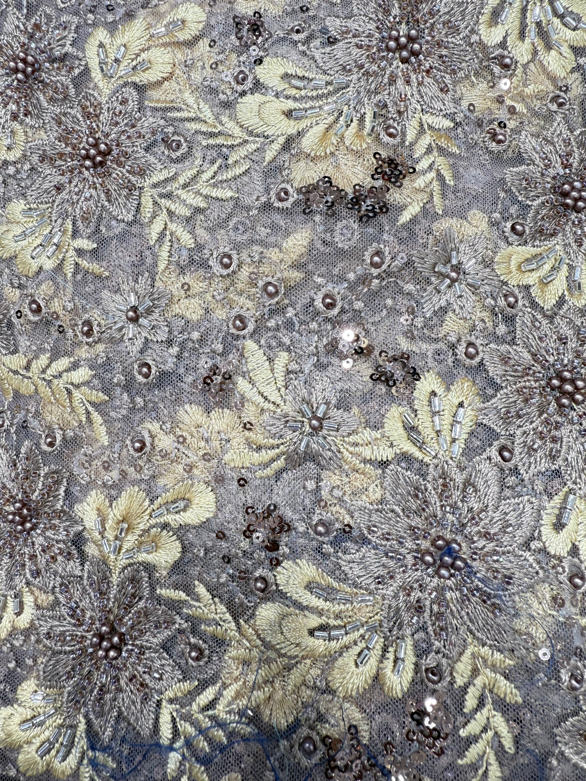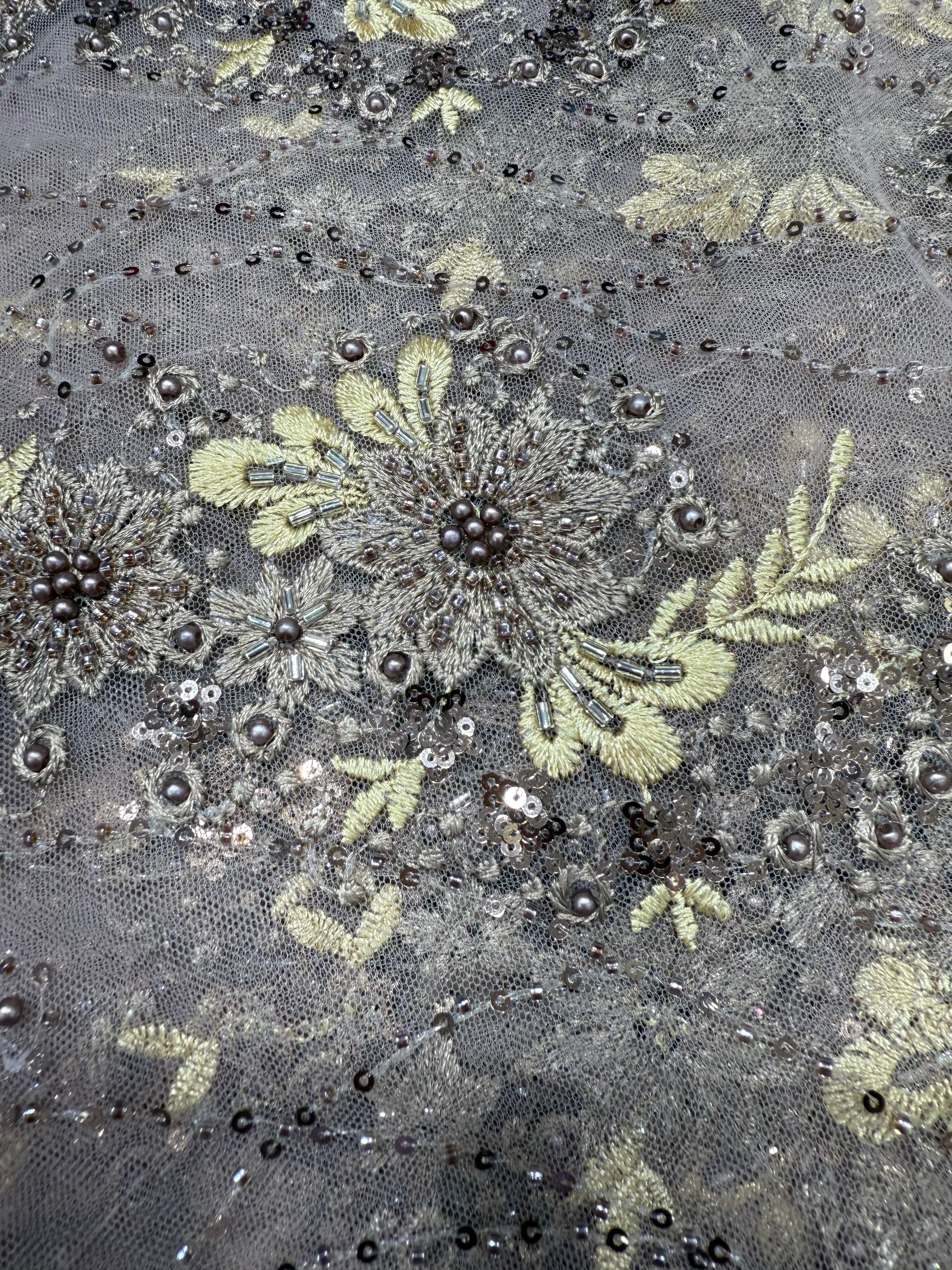 Brown Sequin finish Applique Handwork Net 56" Fabric