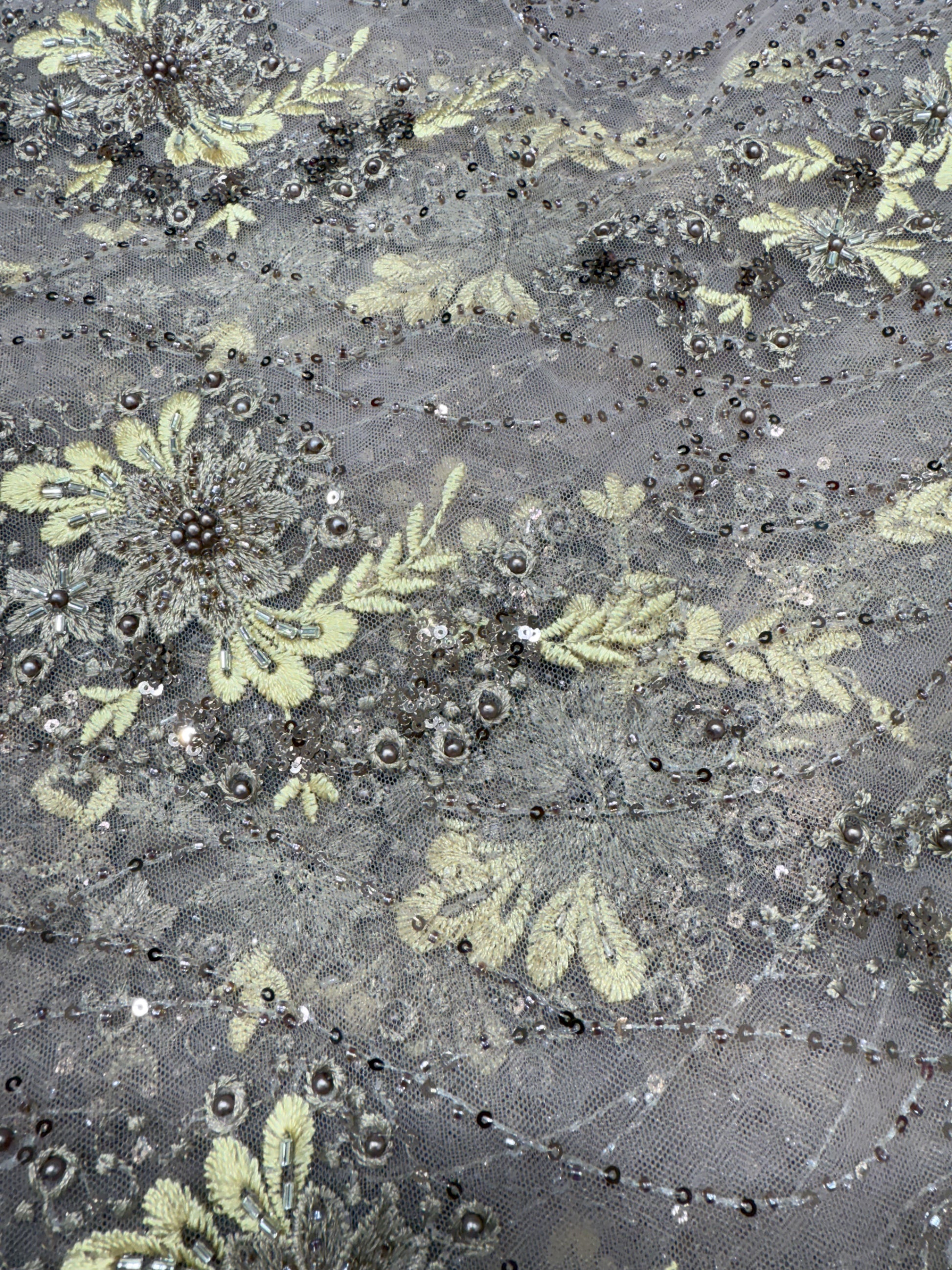Our sequin finish applique lace is a dazzling fabric that features a beautiful applique pattern covered in shining sequins. The sparkling details add a touch of glamour, making it a favorite choice for gowns, skirts, and dresses. Perfect for special occasions, this lace will help you stand out and shine. You'll love how it brings elegance to your outfits!