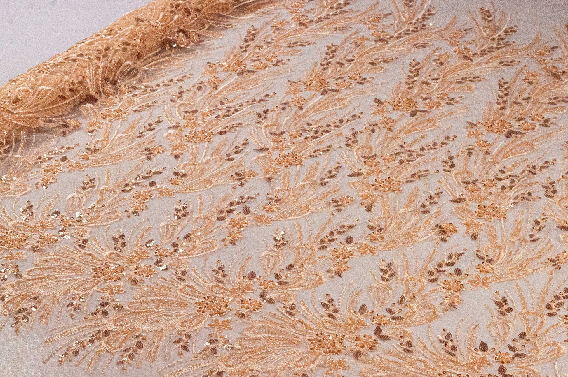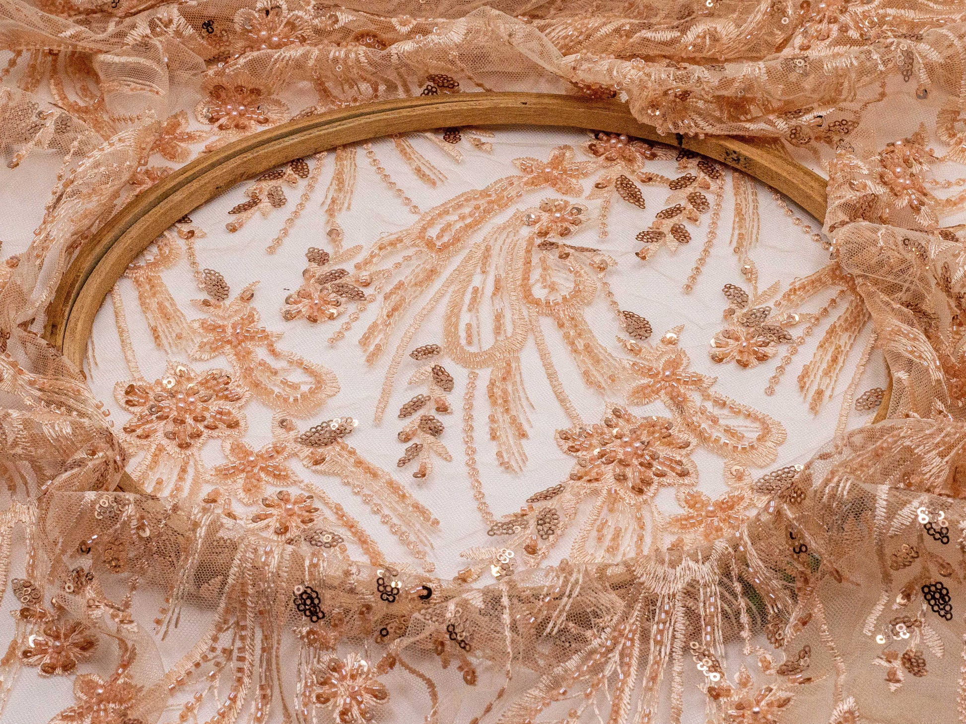 Sapphire Floral Heavy Handwork Net Peach 54" Fabric