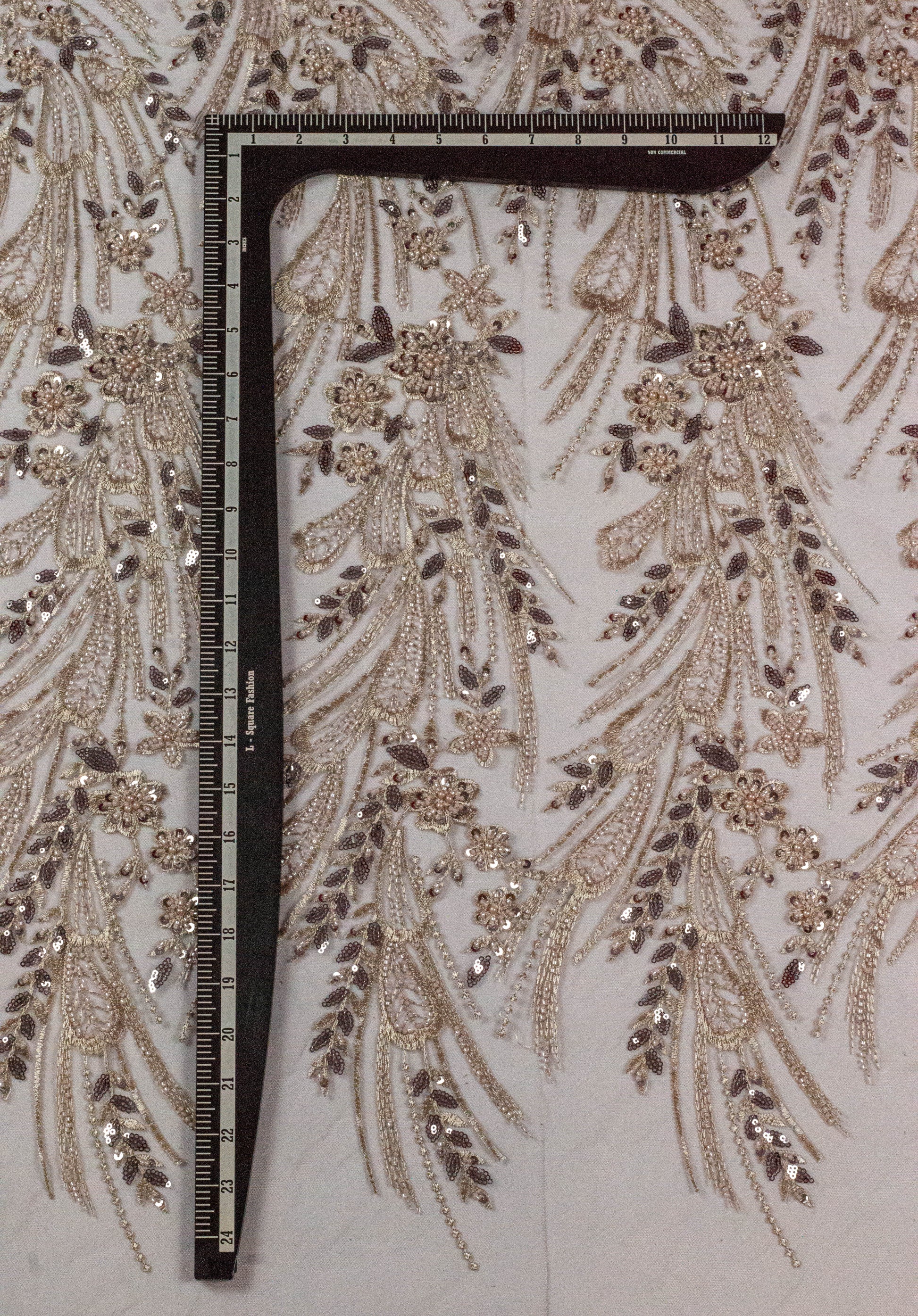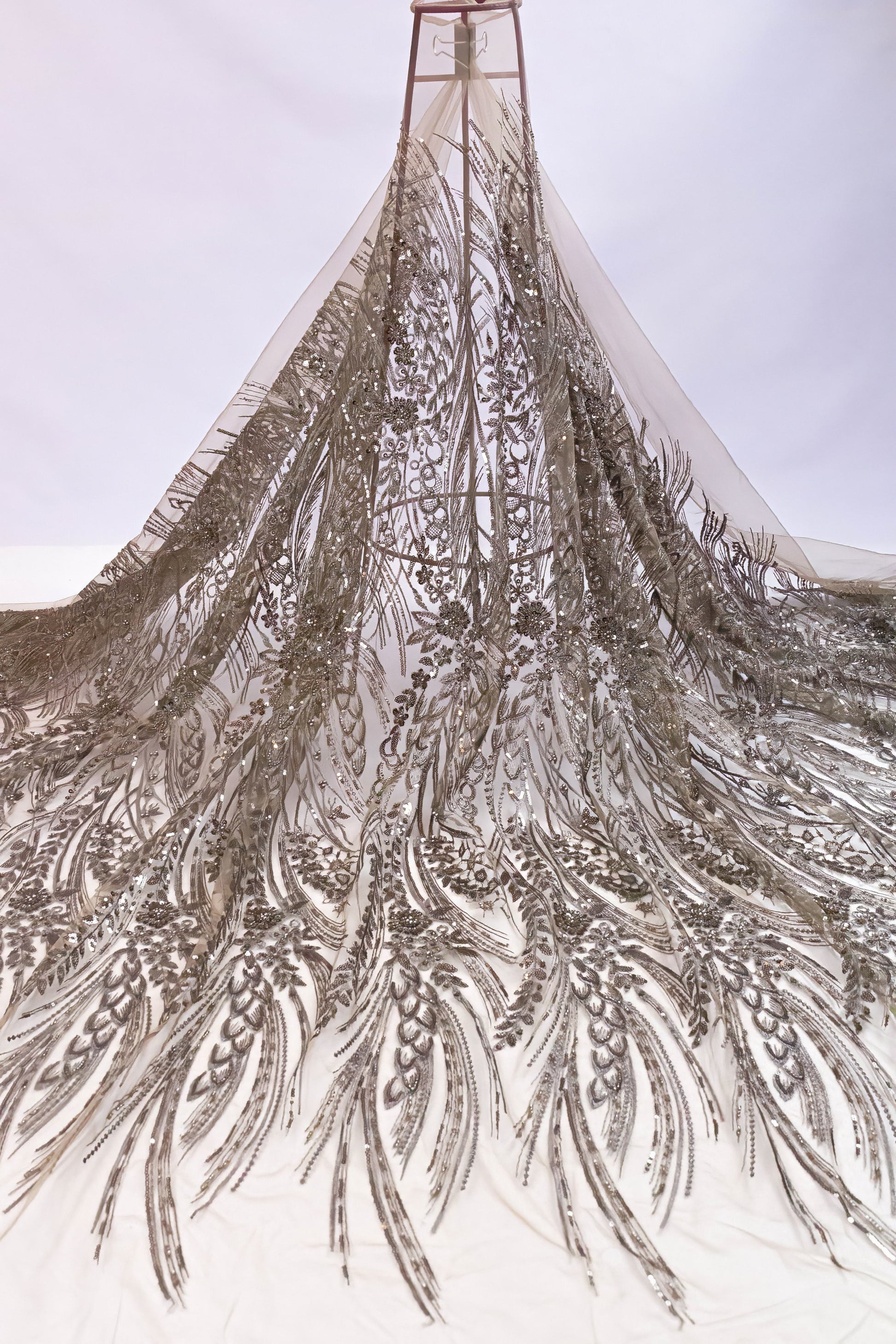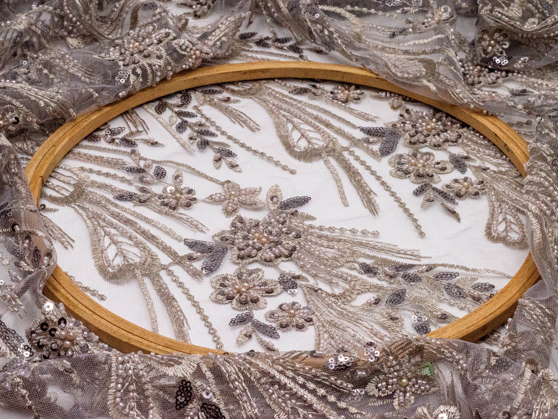 Any lace may look good with most textiles thanks to the expertly done embroidery employing pearls, beads, and patterns. Any kind of lace is gorgeous because of this. A garment or saree is to be sewn. Due to the wonderful flower embroidery that has been done on this lilac-colored lace fabric, customers enjoy it. The beads further enhance the sheen that the lace produces.