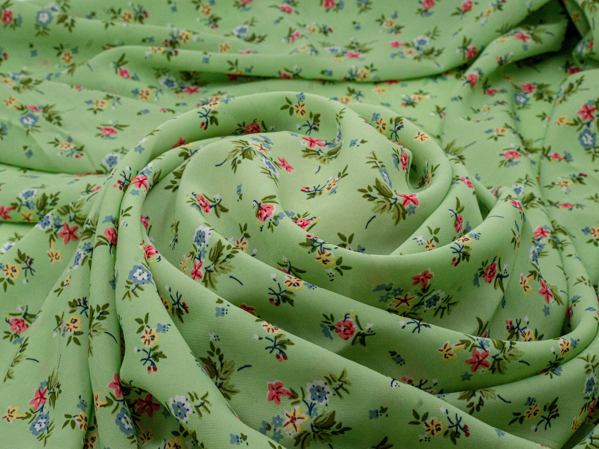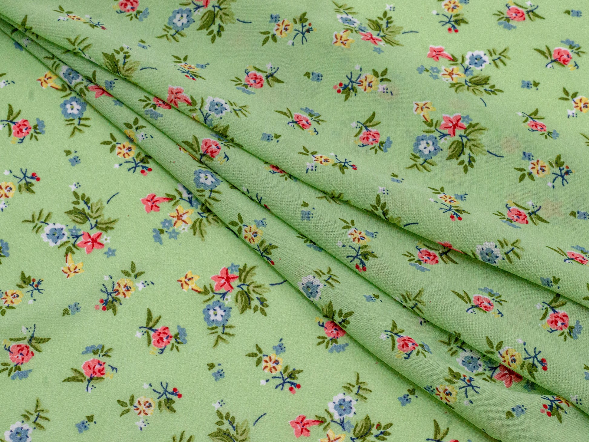 This fabric boasts a base of soft pink, delicately scattered with a vibrant bloom of colorful florals. The georgette weave ensures a beautiful drape, ideal for creating flowy dresses, skirts, or elegant overlays. Its lightweight and breathable nature makes it perfect for warmer climates, keeping you comfortable and stylish all day long.