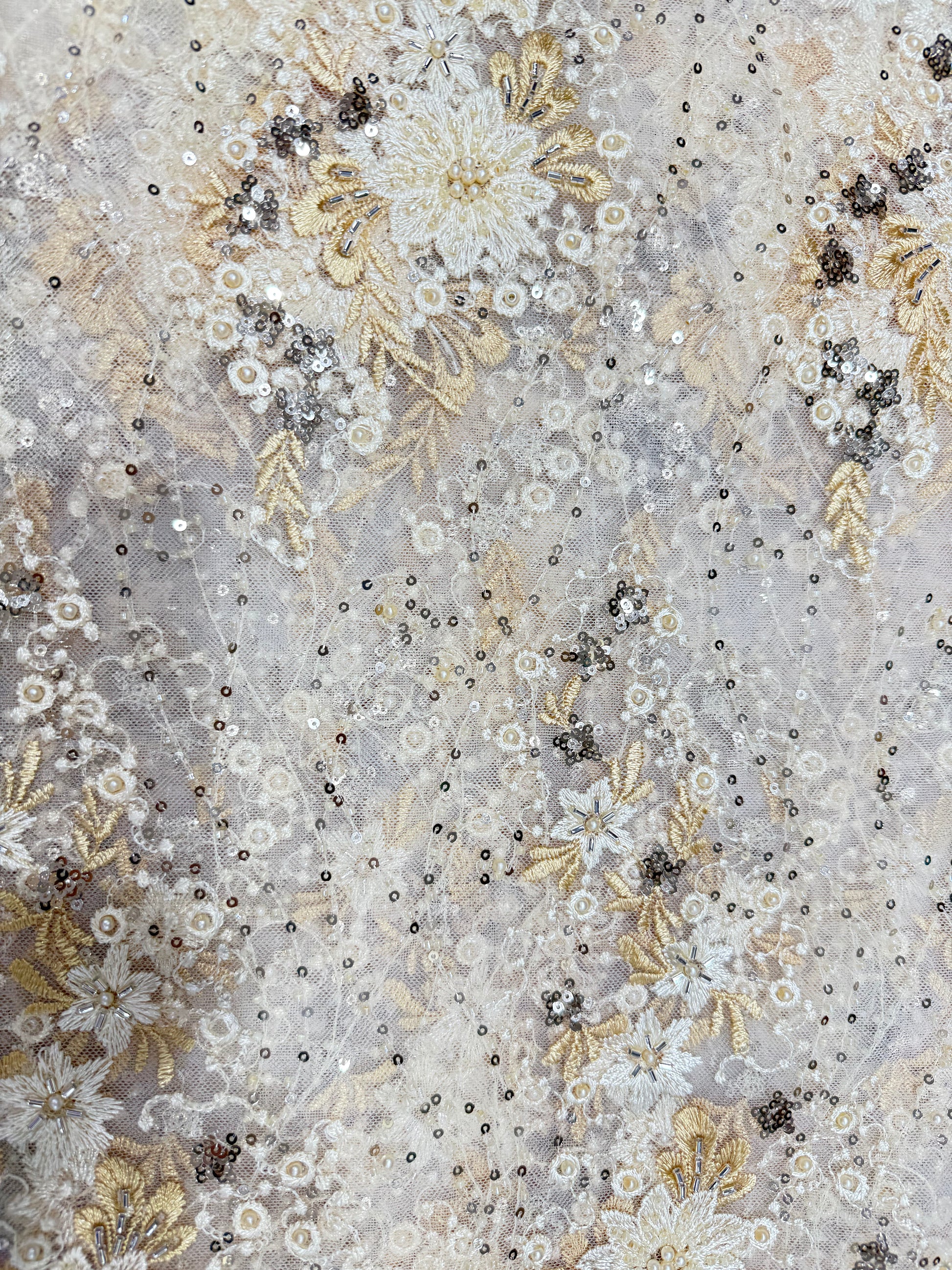 Golden Sequin finish Applique Handwork Net 56" Fabric