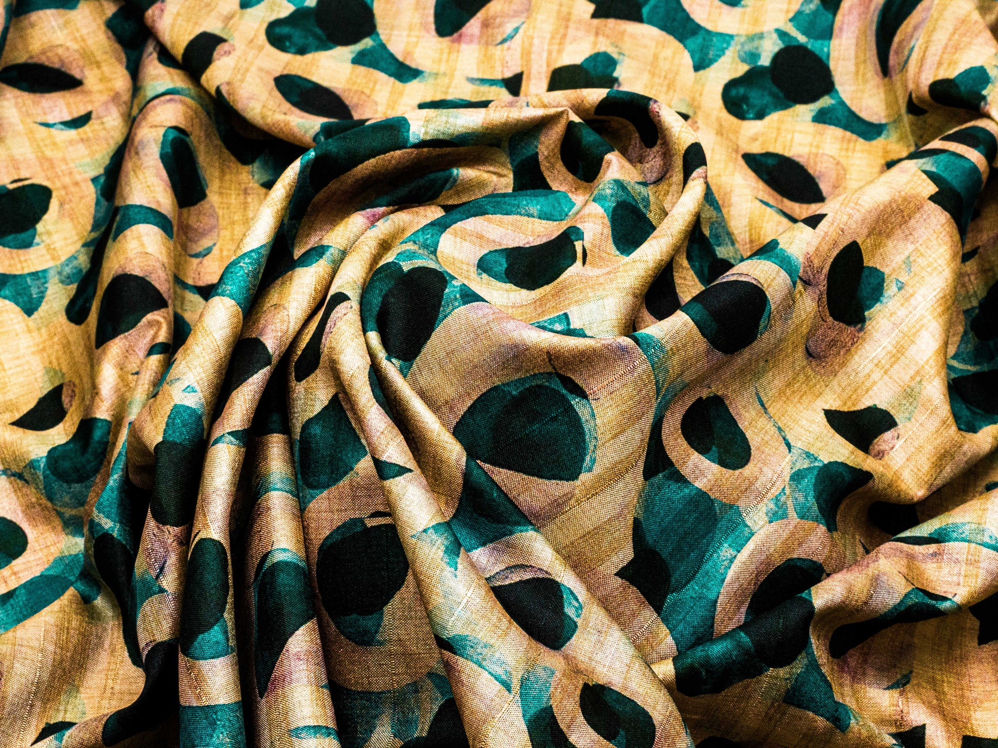 Immitation Raw Silk Abstract Green Fabric