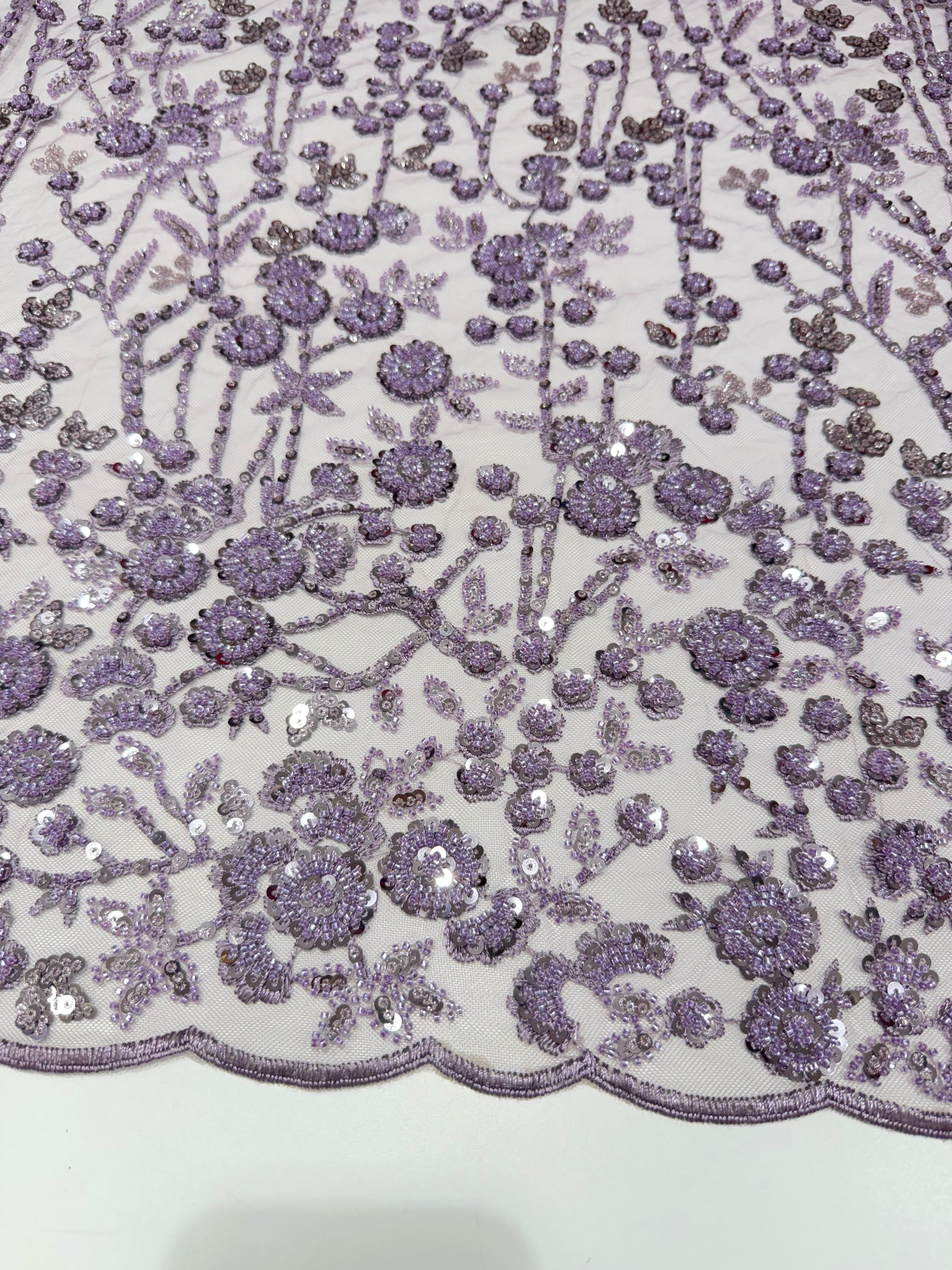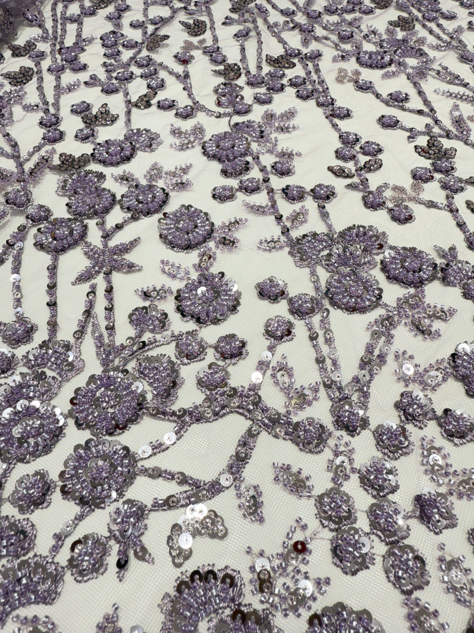 Lavender Glory Sequin Beaded Handwork Net 56" Fabric