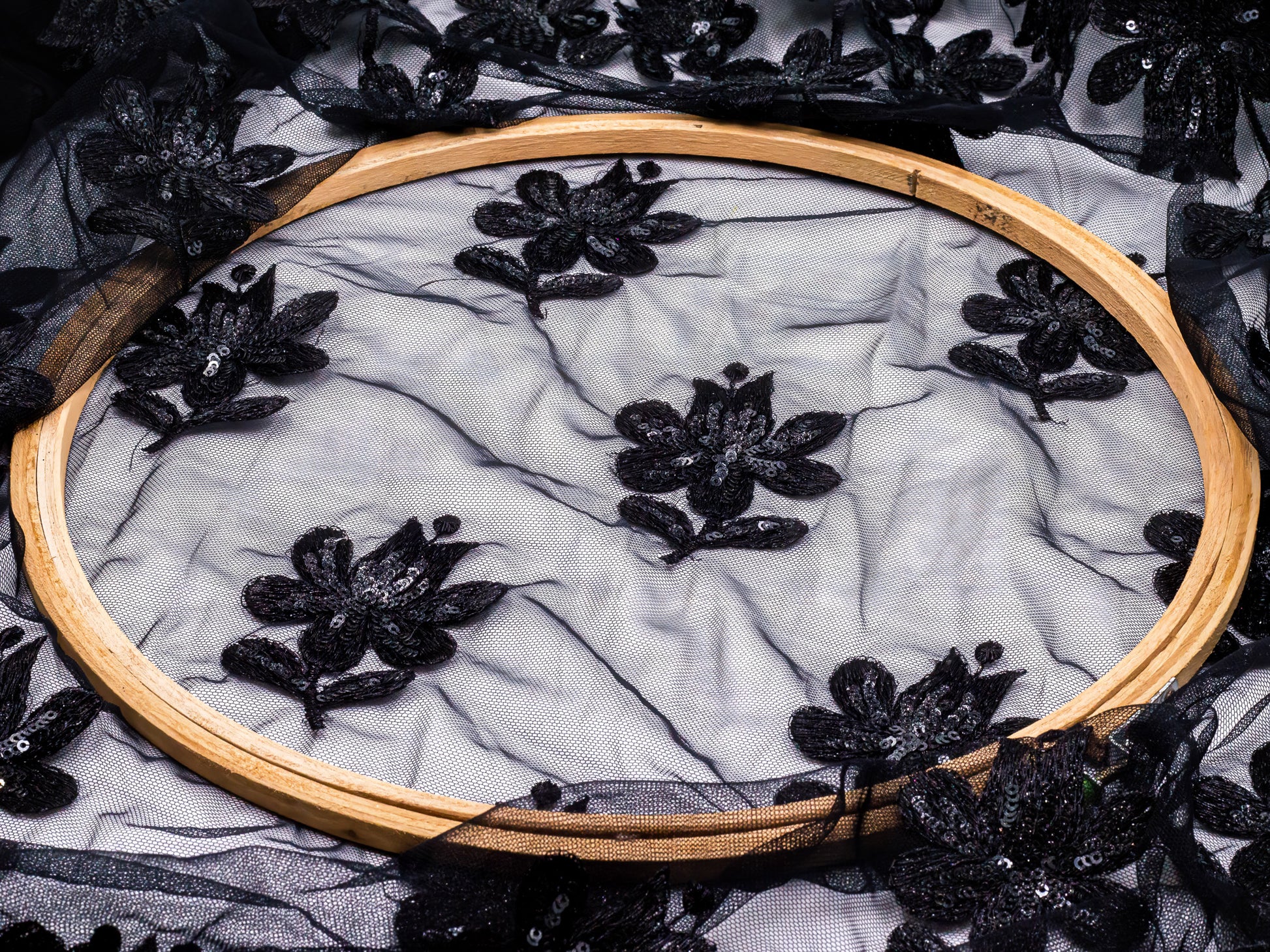 Marcus Net Embroidery Handwork Net Black 54" Fabric