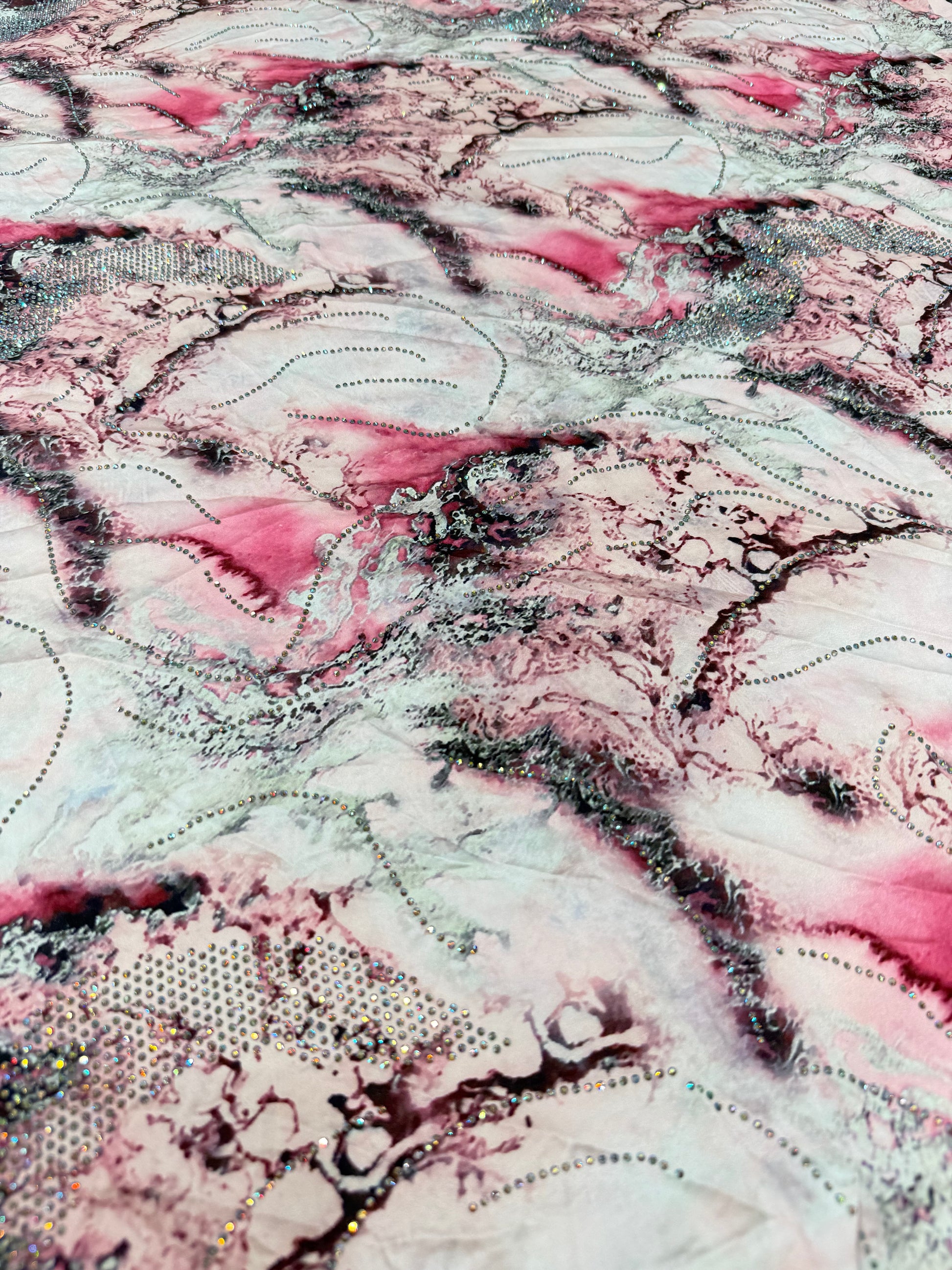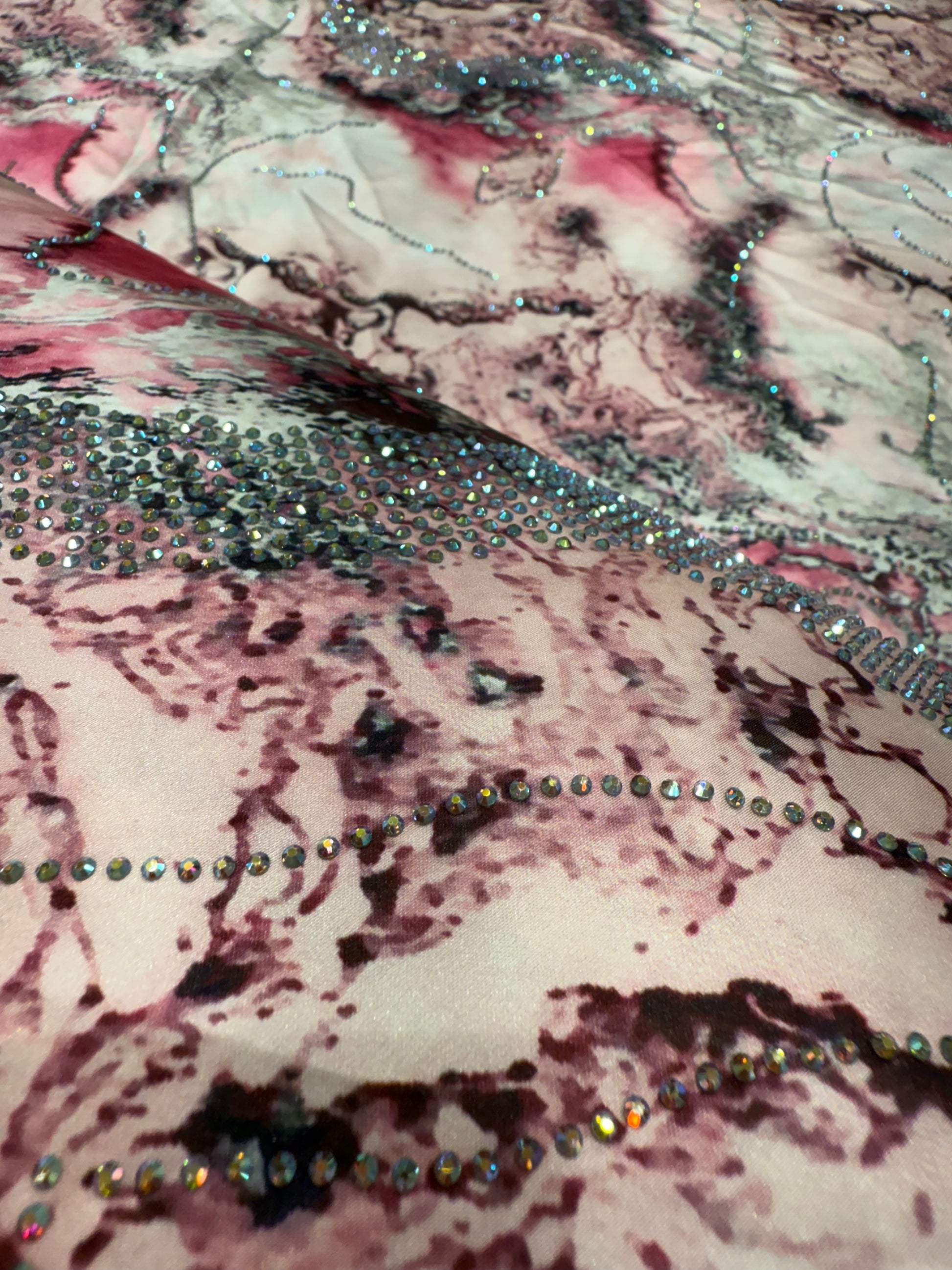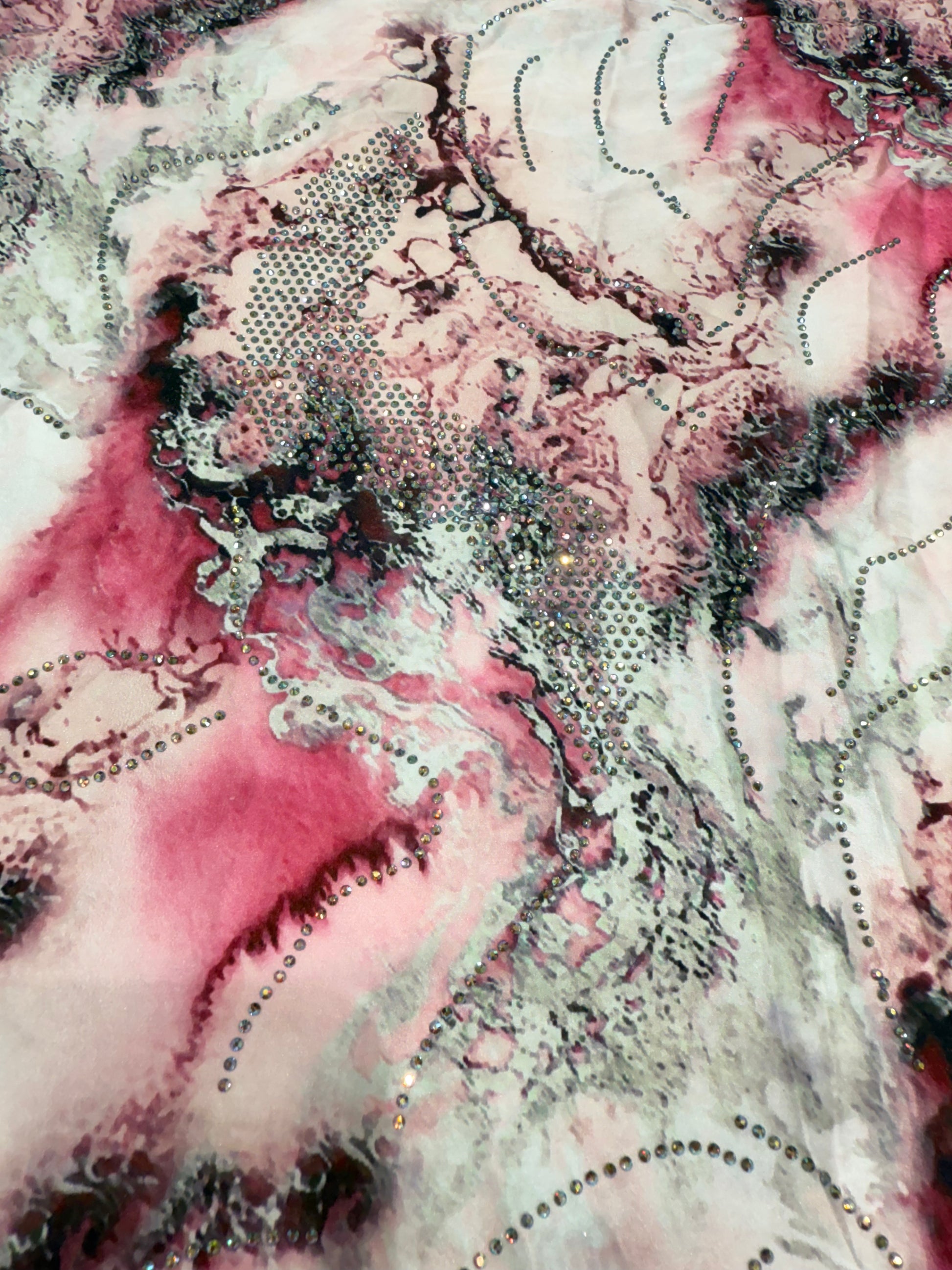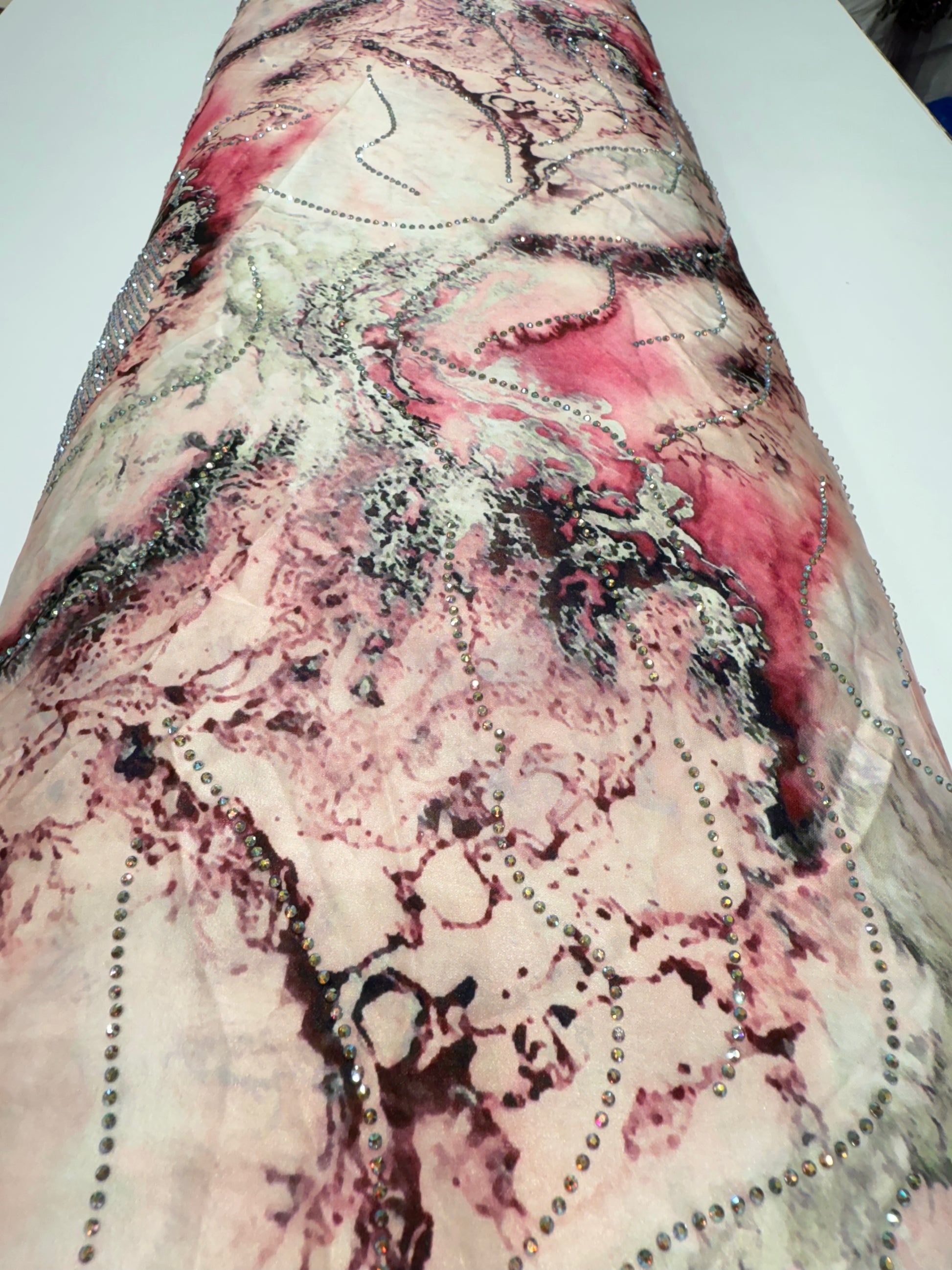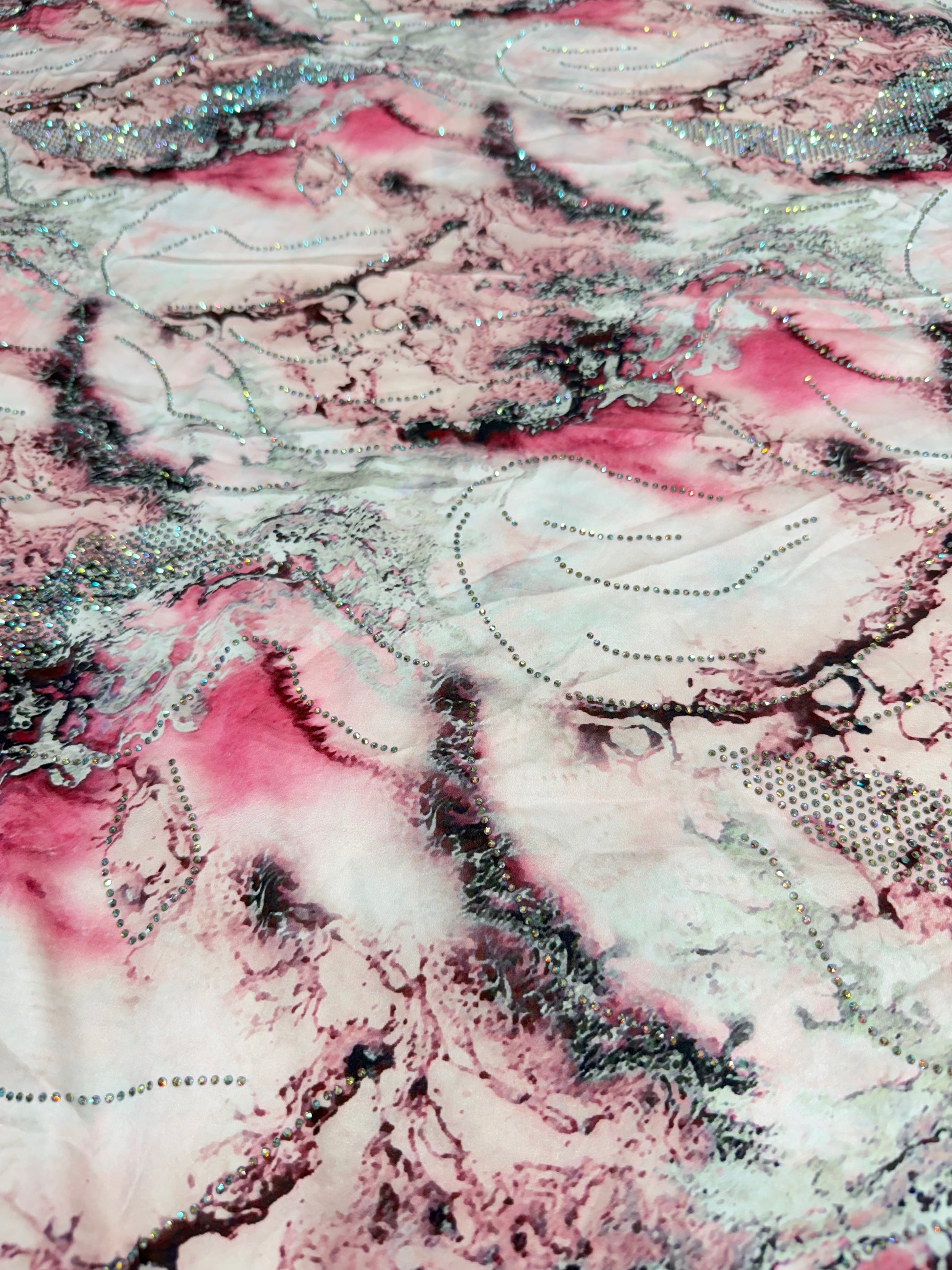 Printed Floral Stonework Fabric is a beautiful material featuring bright and colorful floral prints enhanced with delicate stonework. It has a soft texture, making it comfortable to wear, especially in warm weather. This fabric is perfect for creating summer dresses, as well as stylish skirts and tops. Its cheerful design and lovely finish make it a great choice for a fresh, fun look!