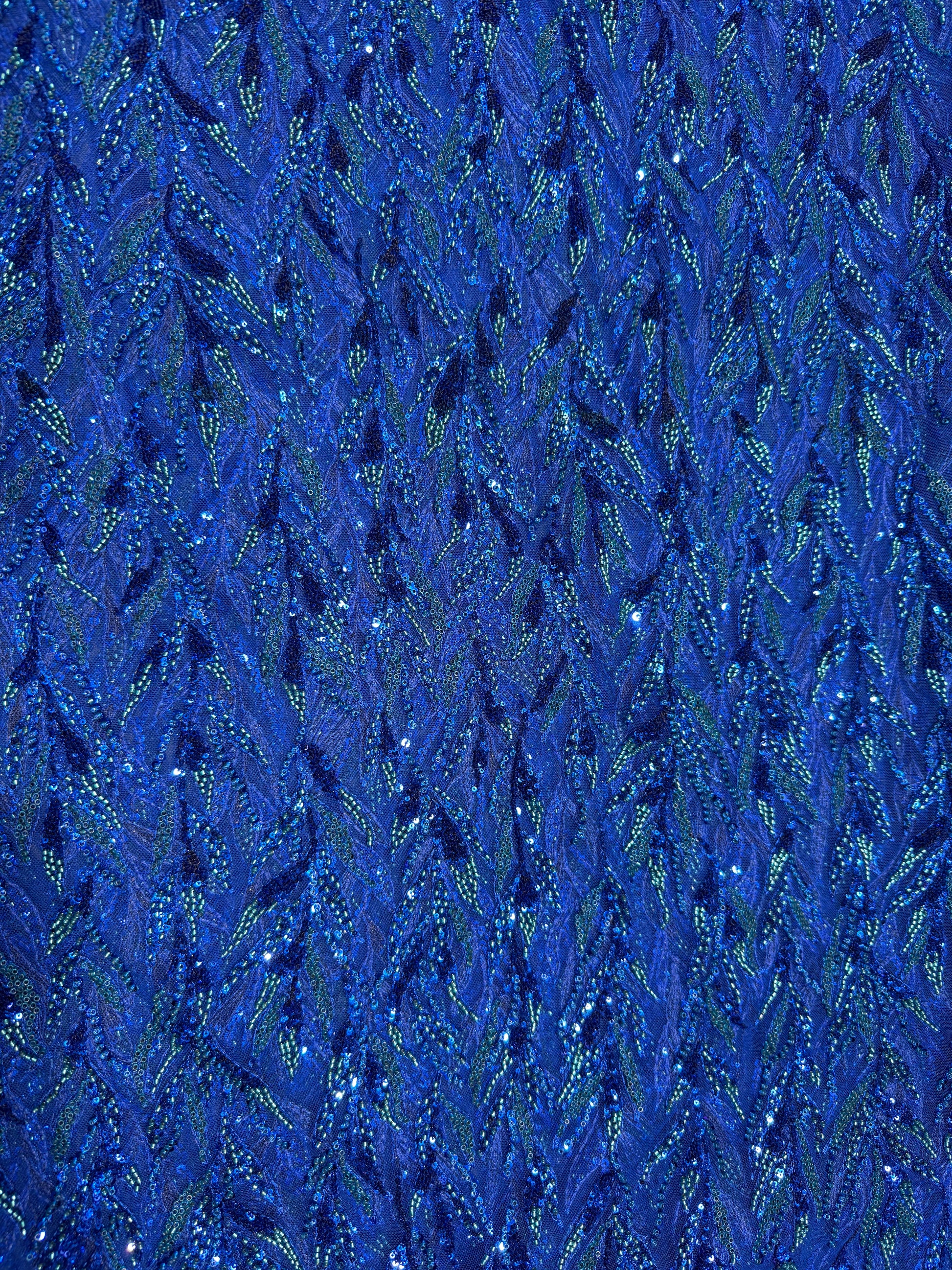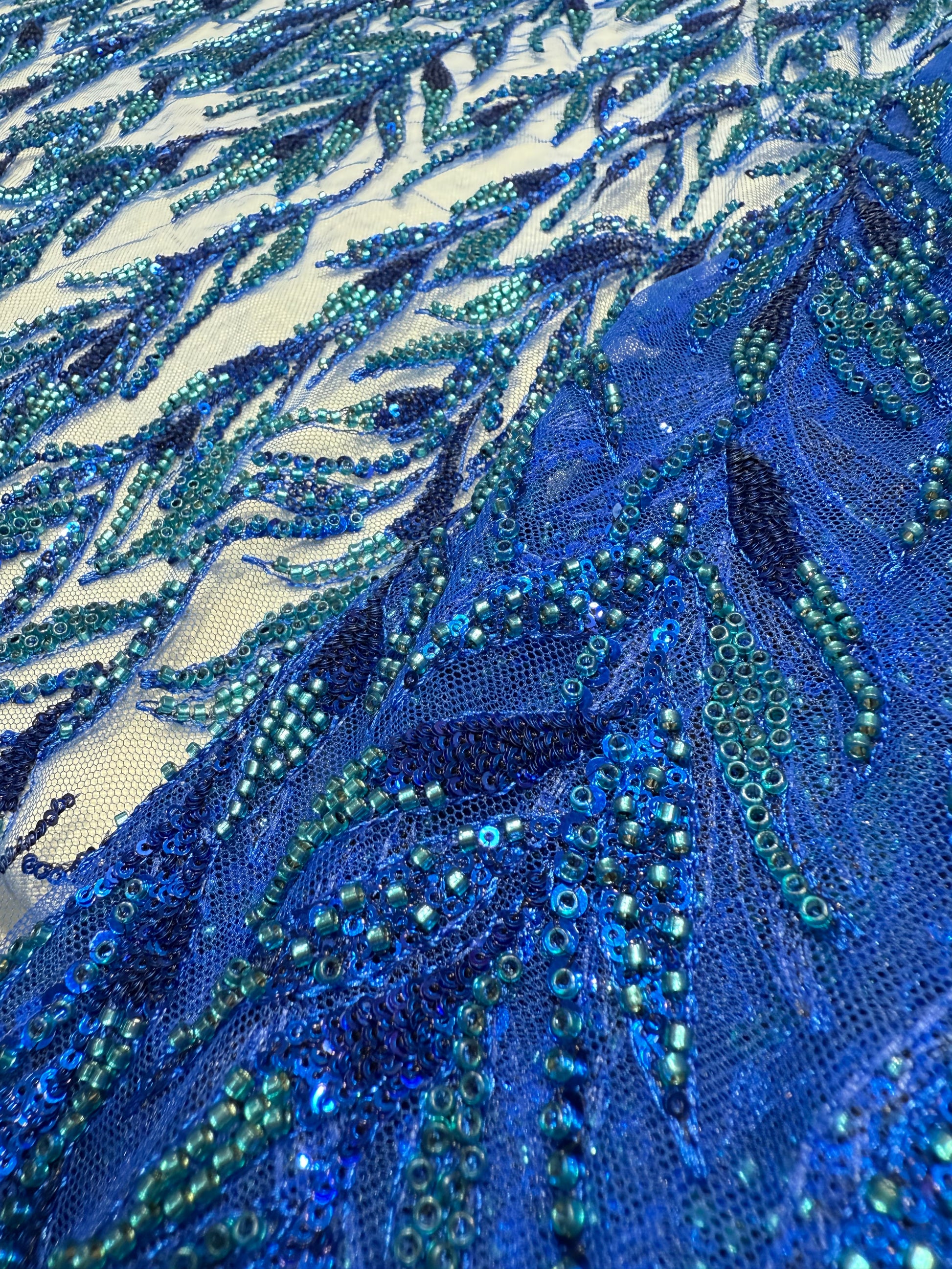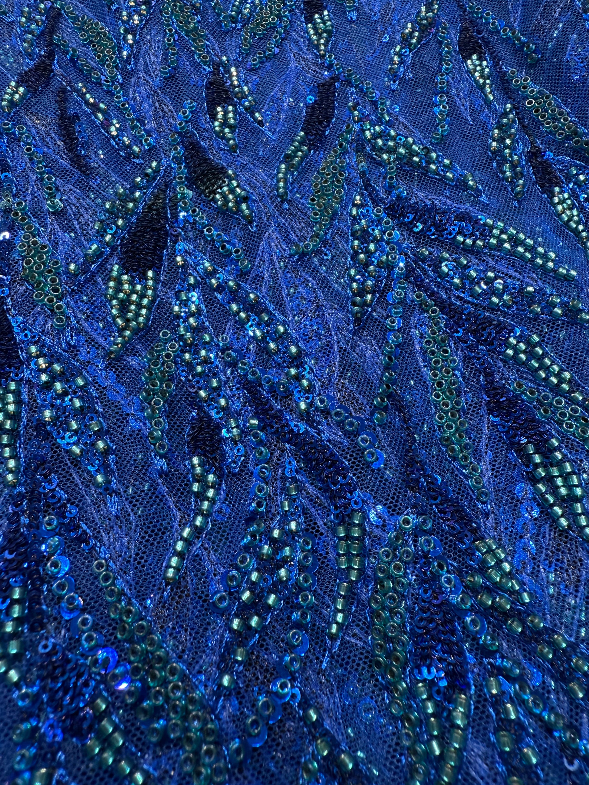 Blue Premium Sequin Leaf Handwork Net 56" Fabric