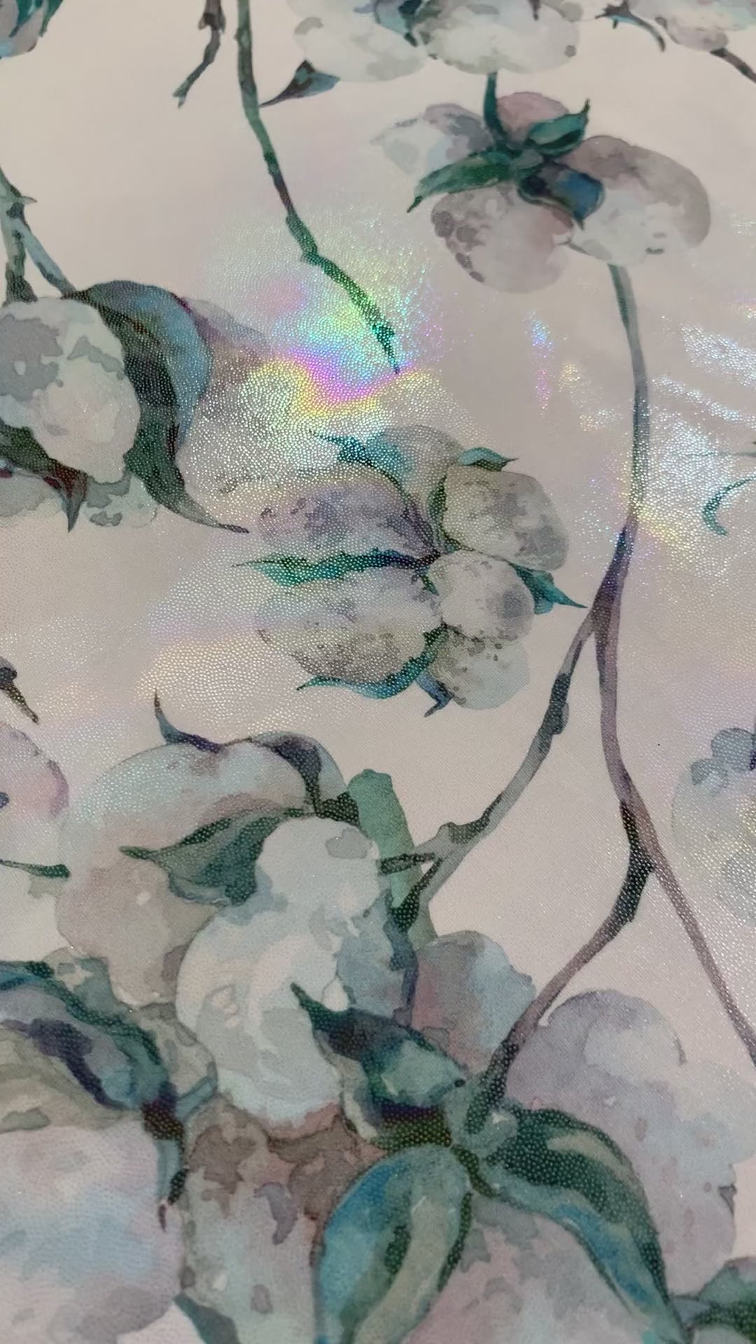 our Shimmer Floral Teal & Grey Fabric, a luxurious and exclusive holographic delight for fashion enthusiasts. This soft and comfortable fabric features a beautiful floral design in mesmerizing blueish teal hues, making it perfect for creating lightweight, stunning garments.