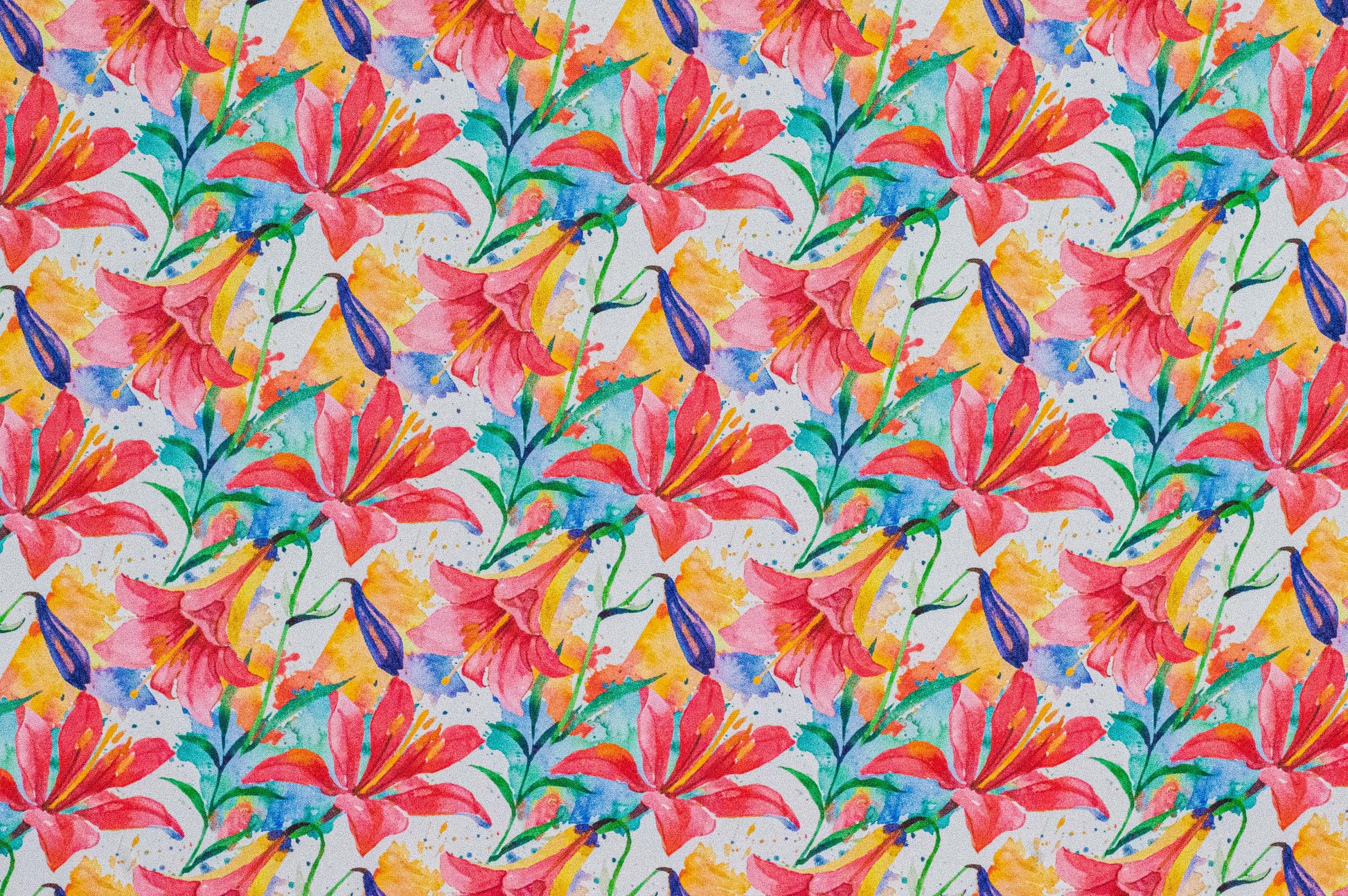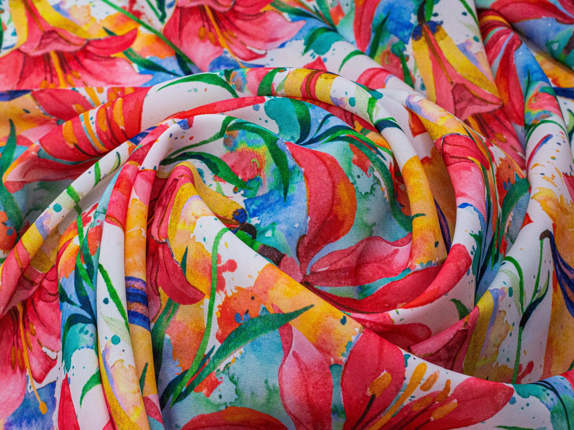 Our enchanting Tropical Print Floral Garden Fabric, a true masterpiece of color and artistry. This fabric is a delightful blend of multicolored flowers and watercolor designs, featuring shades of blue, orange, pink, and yellow that come together to create a vivid and vibrant fabric that captures the essence of a tropical paradise. This fabric is perfect for adding a splash of color to your wardrobe and infusing your style with the lively spirit of the tropics. Whether you're planning a vacation, a beach outing, or simply want to brighten up your everyday attire, this fabric is the ideal choice.