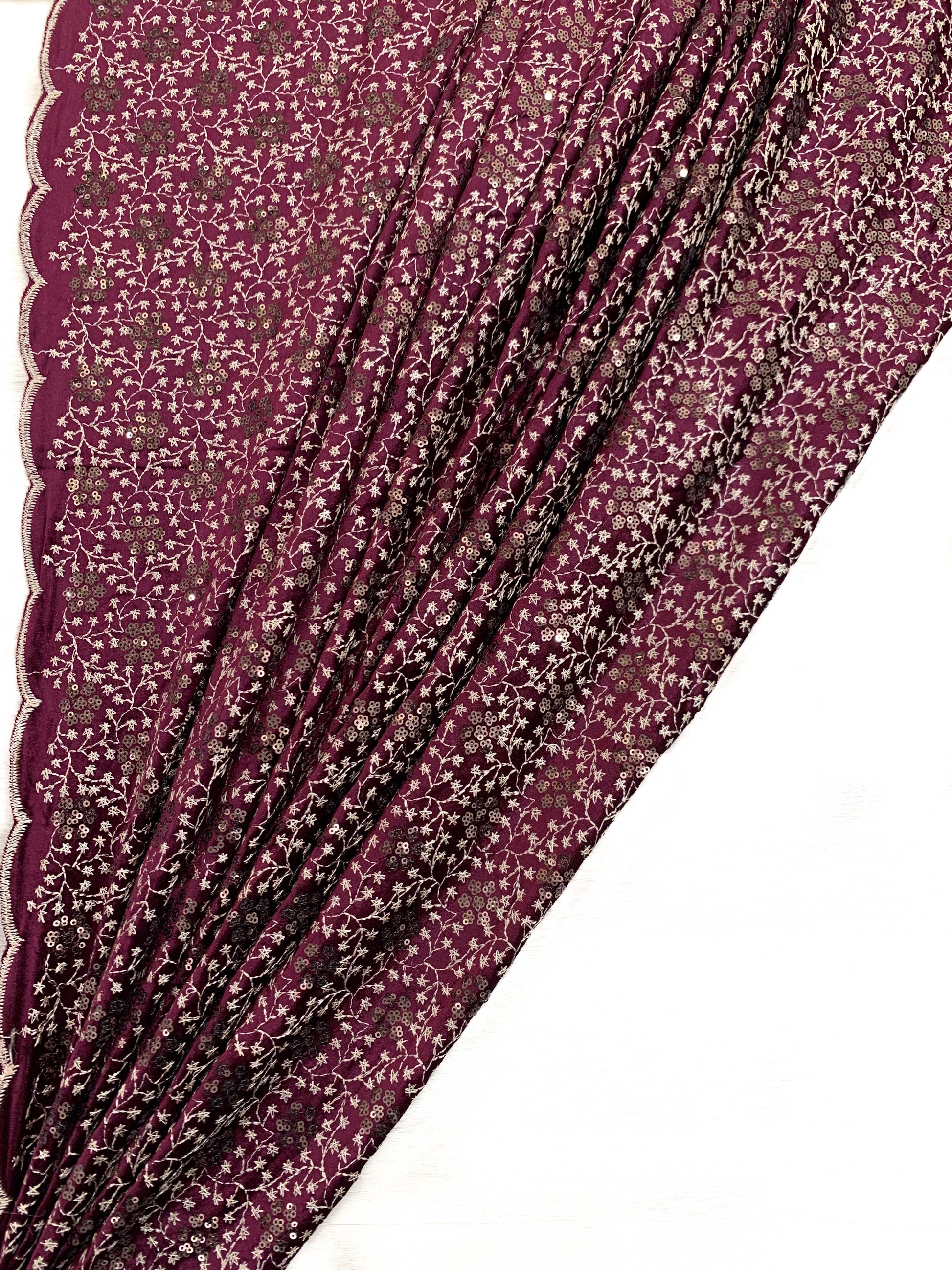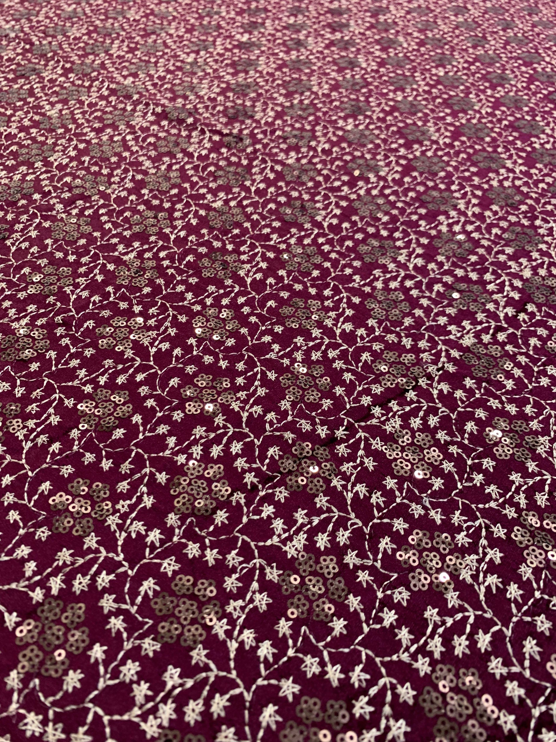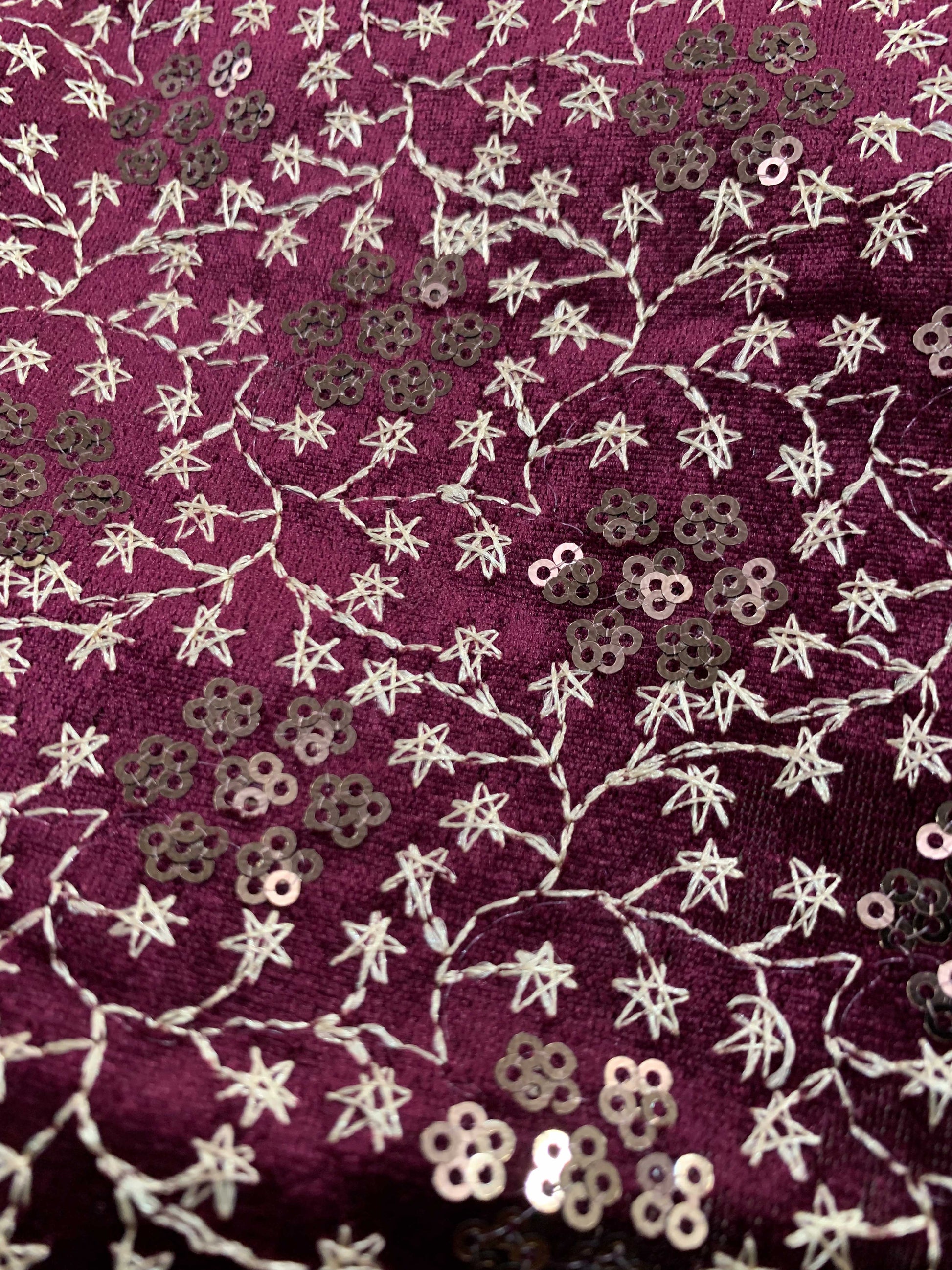 Heritage Velvet Embroidery and Sequin Maroon Fabric