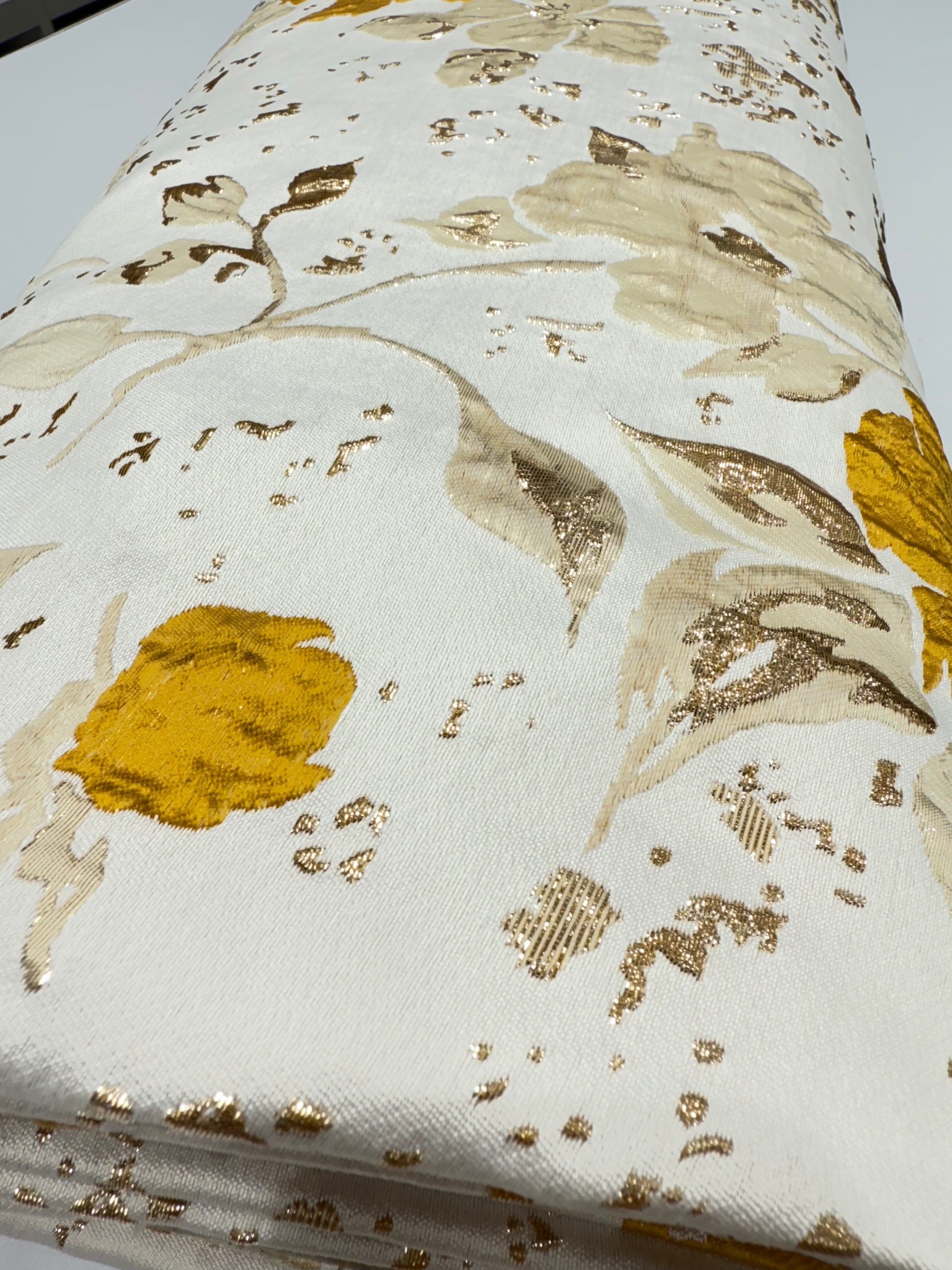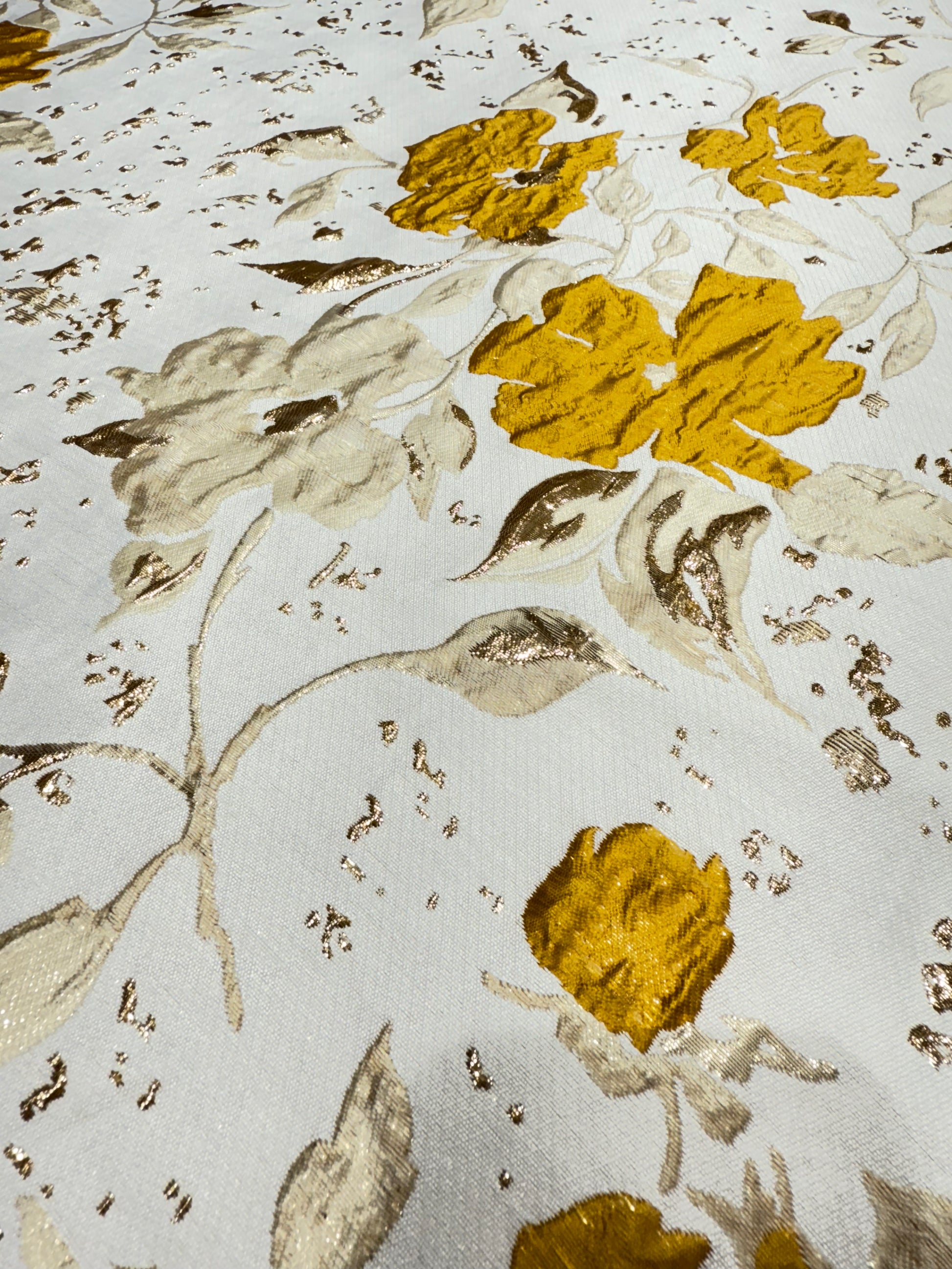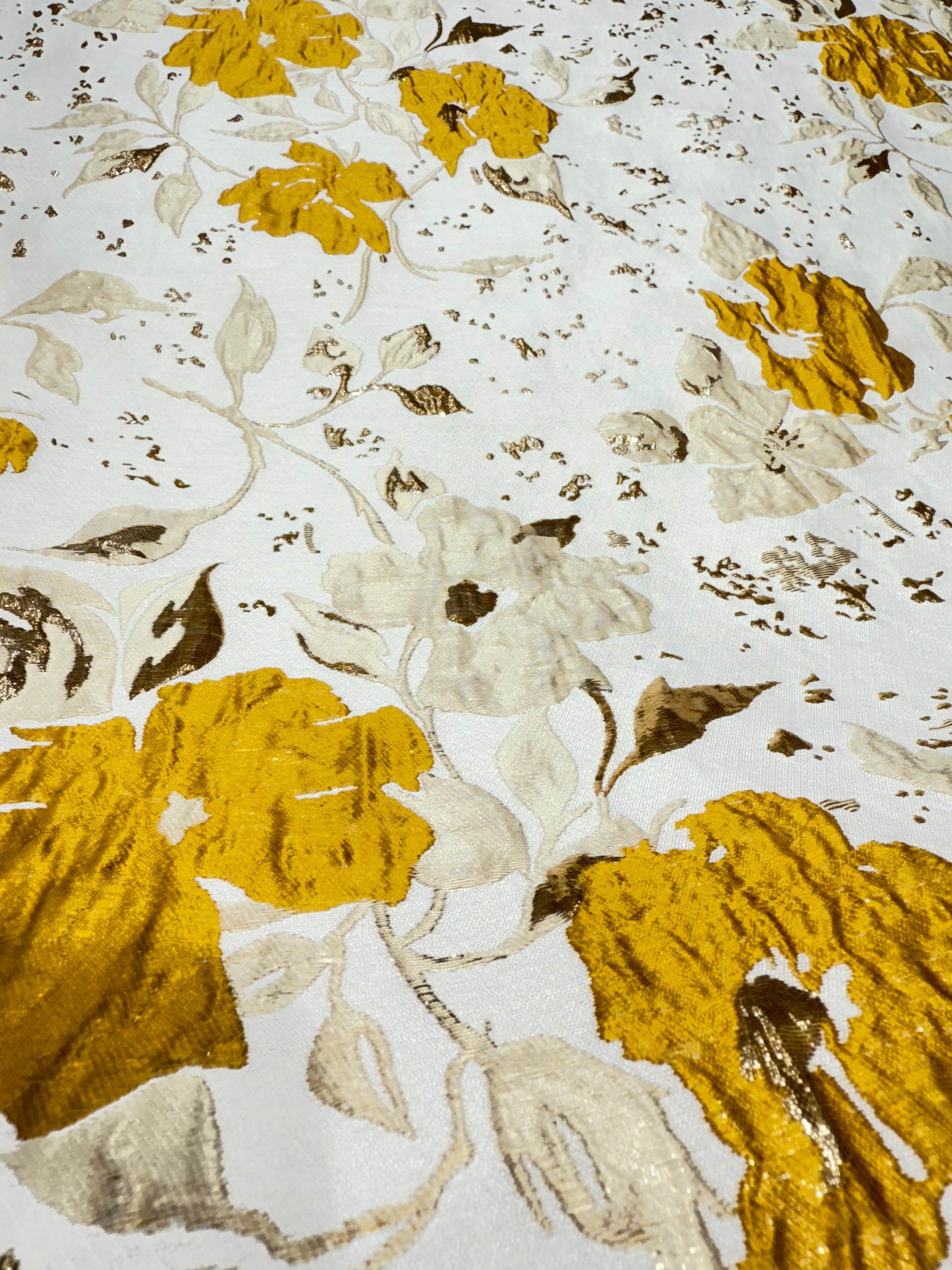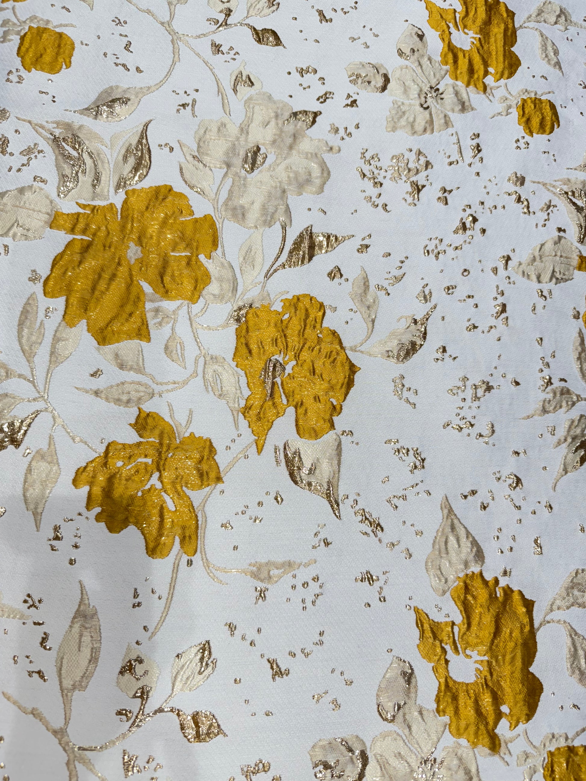 Mustard Yellow Floral Metallic Brocade 56" Fabric